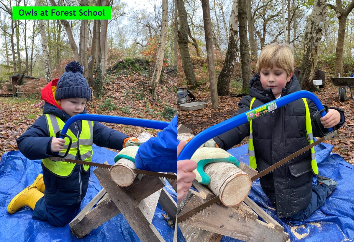 Our Wise Owls groups have been busy practising their outdoor skills: sawing, drilling and even splashing in puddles! It’s all part of the fun and learning at Forest School, where hands-on experiences help build confidence and creativity.