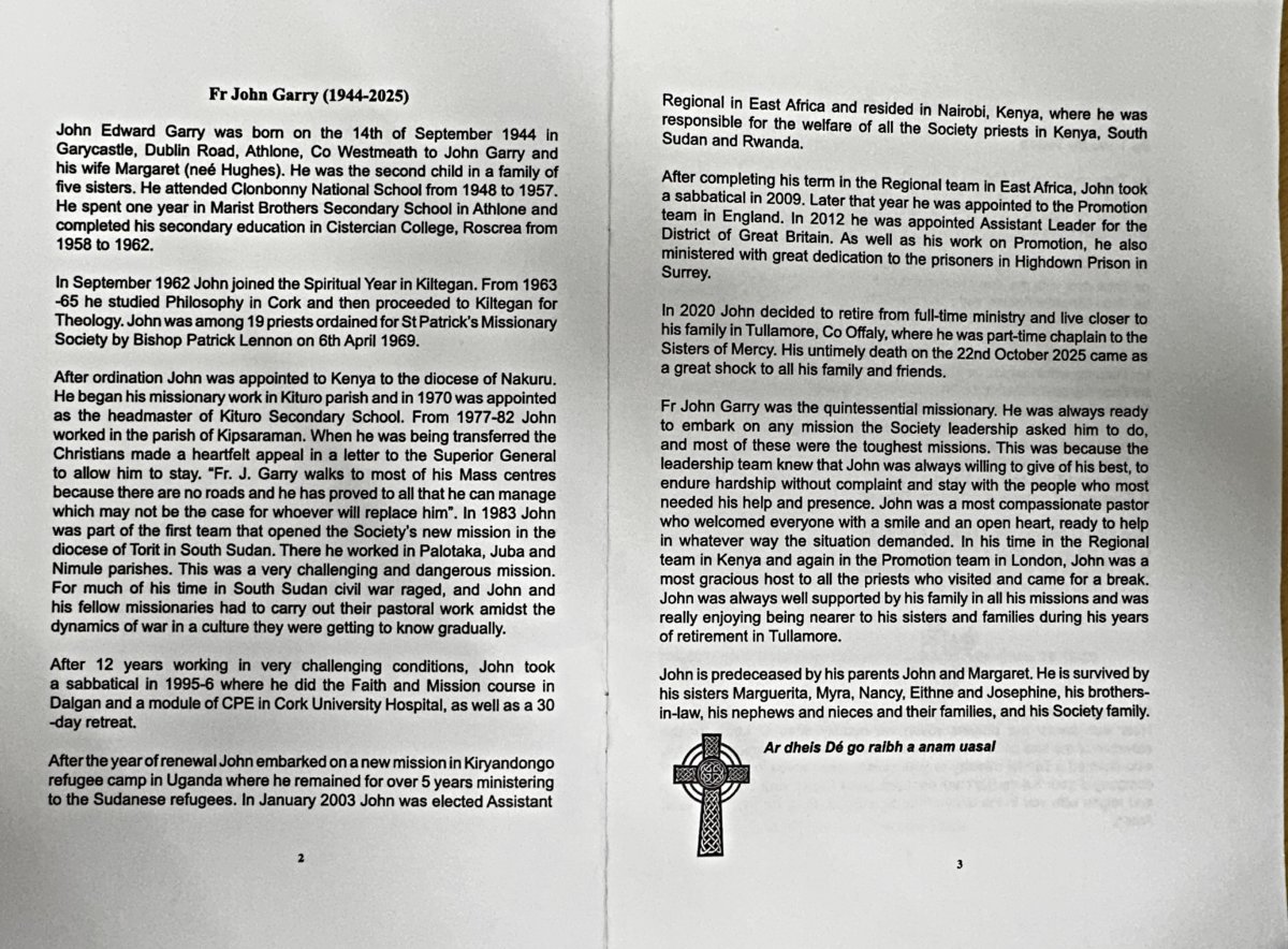 It was a time of reflection and gratitude for a truly remarkable priest who dedicated his life to God. A missionary at heart, Fr John served in Kenya, South Sudan, Uganda, and Rwanda before returning to the UK, where he was appointed Assistant Leader for the District of Great Britain.