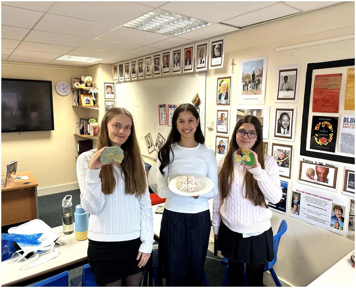 A-Level Psychology students wrapped up the term with a blend of learning and fun! They conducted a fascinating independent research project on conformity. Year 10 students bravely participated, estimating the number of jelly beans in a jar. The results supported informational social influence: in uncertain situations, participants tended to conform their answers to those of their peers, assuming they had better knowledge. Finally, to celebrate the end of the year, the students got creative, crafting a delicious Rice Krispies brain complete with “neurosweets” neurons made of sweet treats—a tasty way to mark the occasion!