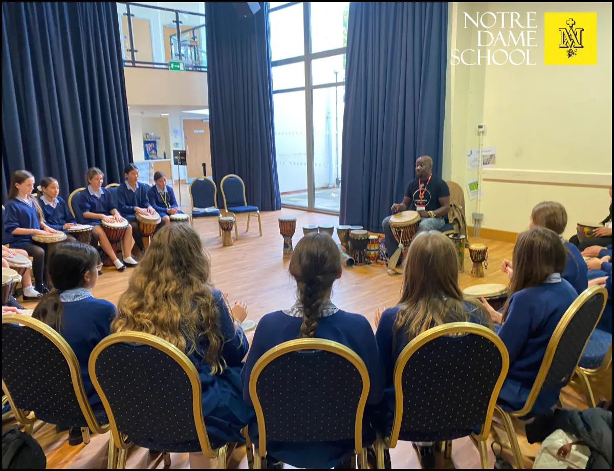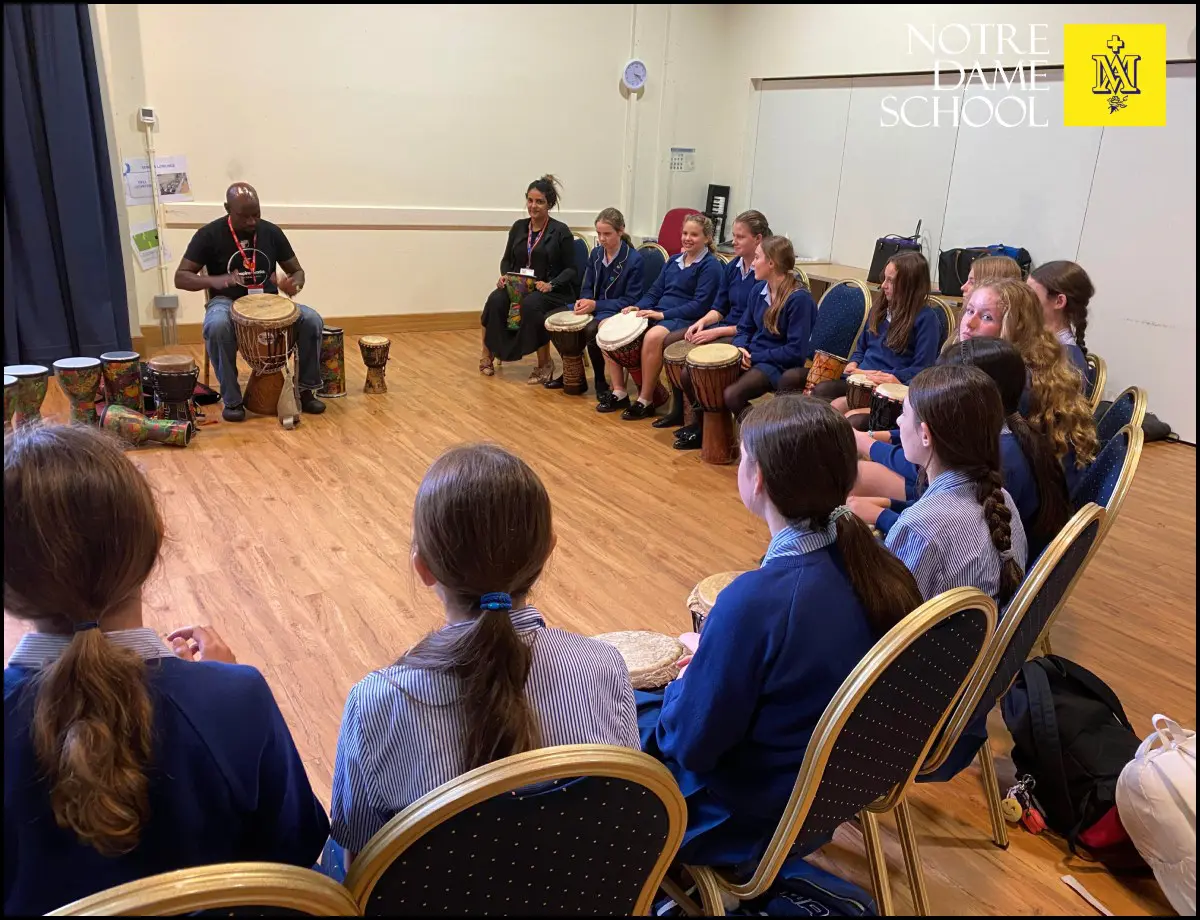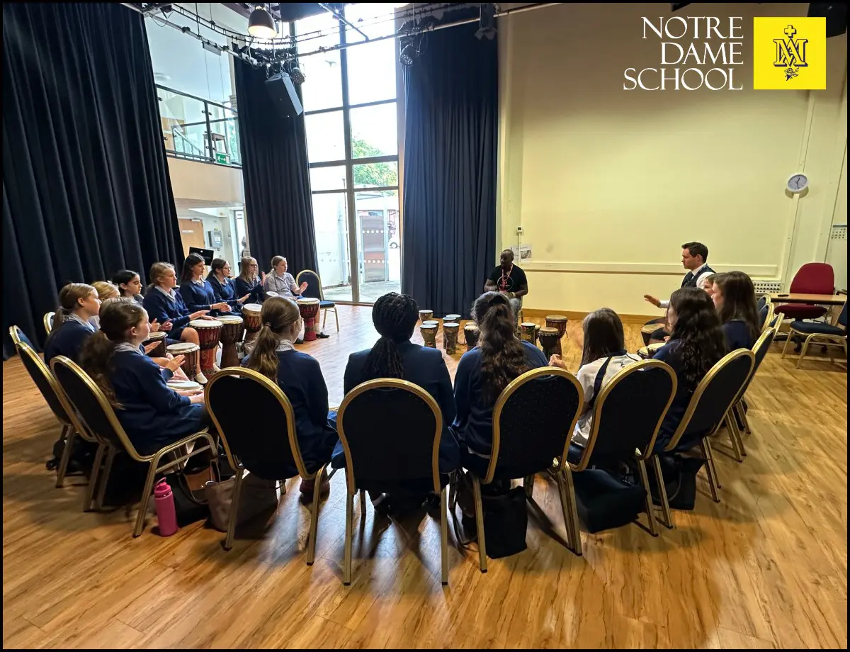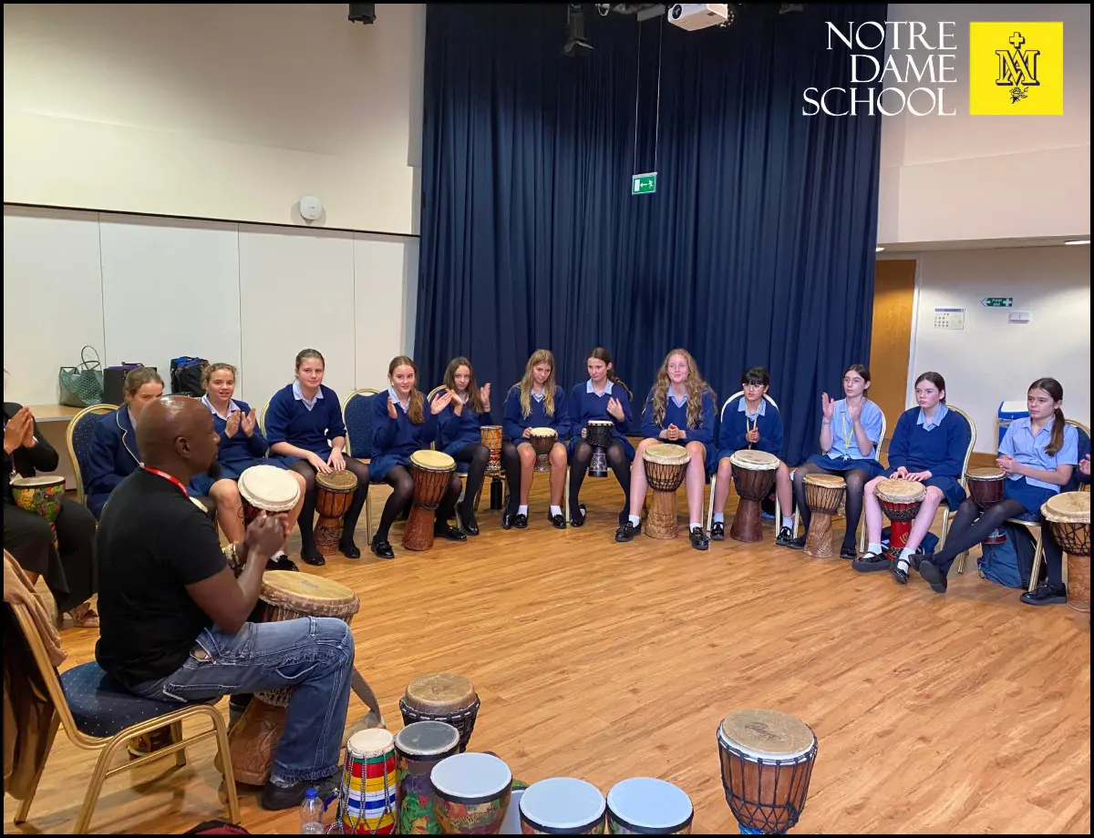 This week, Year 8 students embraced the rhythm and energy of African drumming in dynamic workshops led by Lucky Moyo from Inspire Works. The sessions offered a hands-on experience of traditional instruments and musical techniques, encouraging creativity and collaboration.