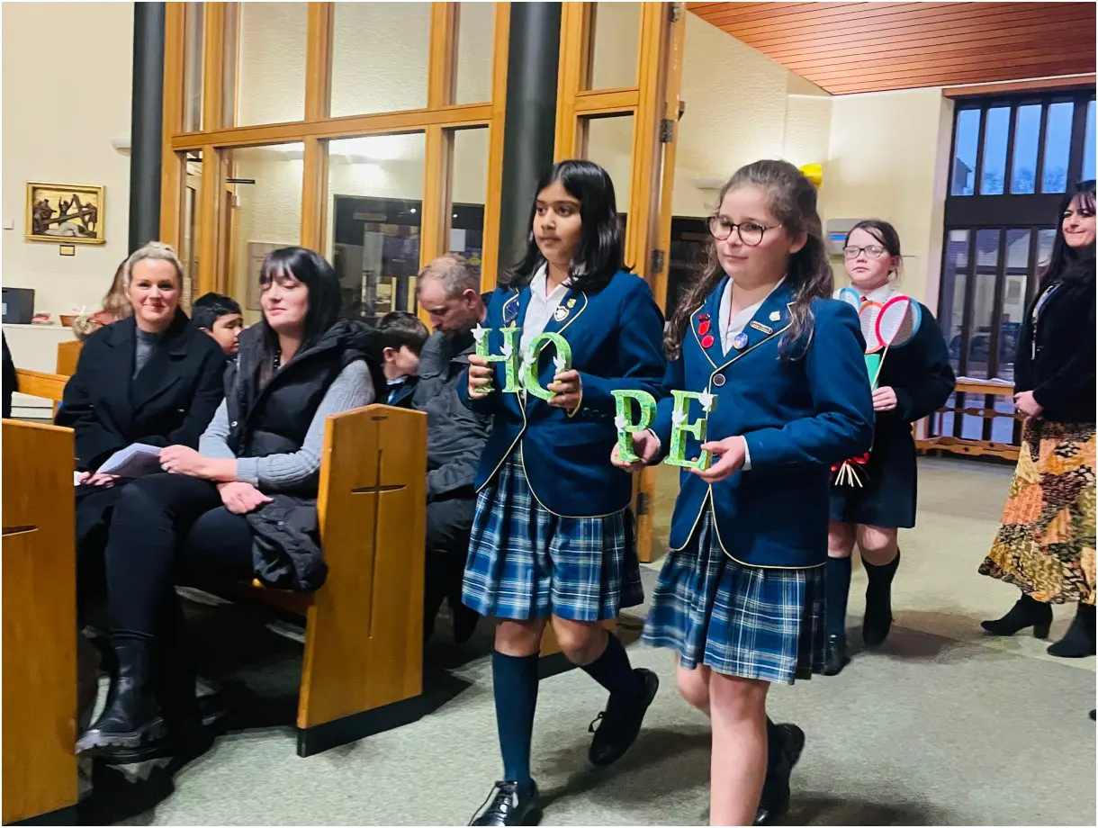 The Mass was celebrated at Christ the Prince of Peace Church in Weybridge. The theme for the Mass was ‘Pilgrims of Hope’. Each school had been invited to prepare some artwork to link with this theme, to be presented during the offertory procession. Prep pupils, with Mrs Brennan, made beautiful letters, spelling out the word HOPE; we were honoured when, after the offertory, these were placed on the altar for the whole congregation to see.