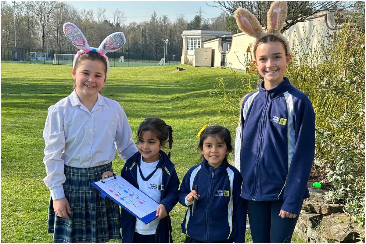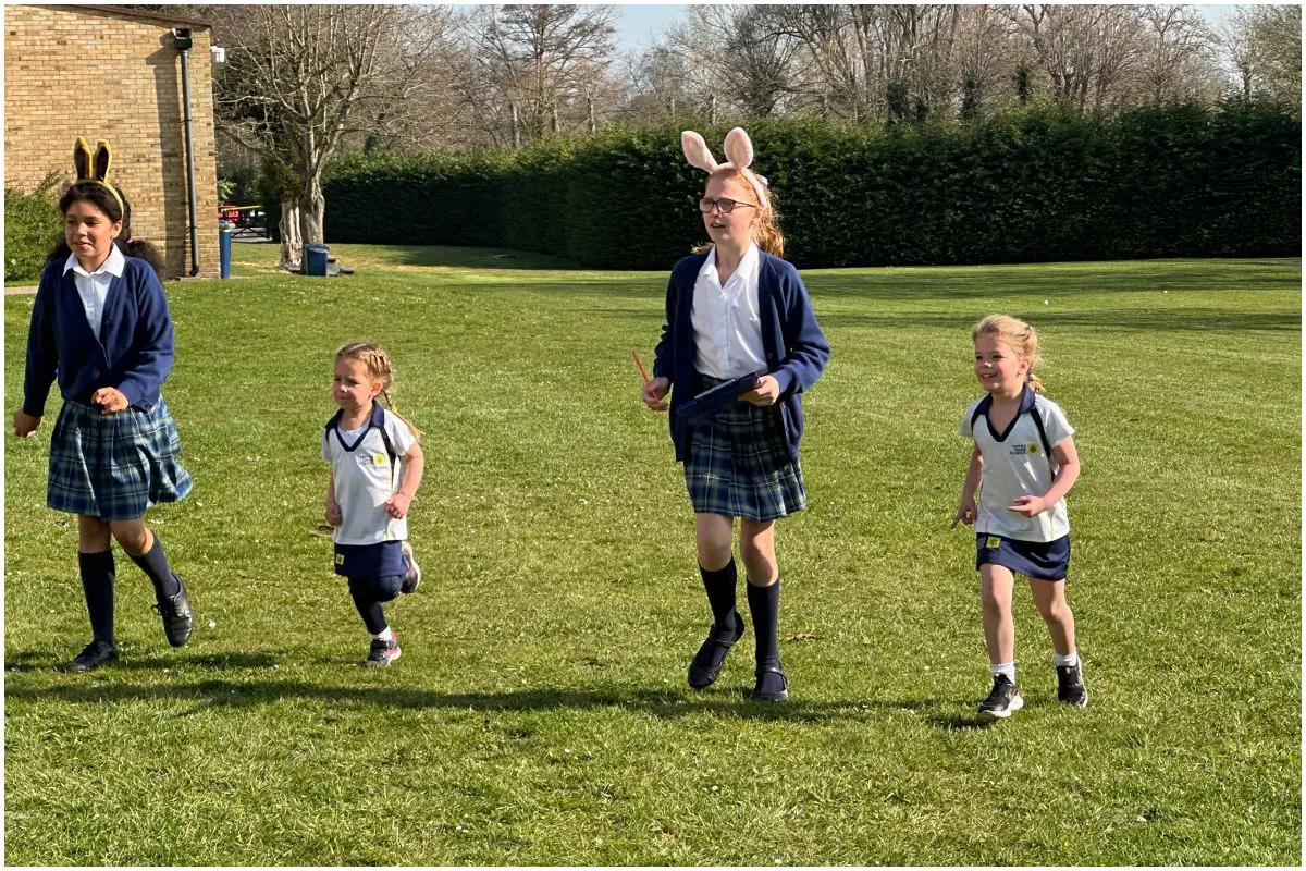 As part of our annual tradition, the Year 6 girls had the ‘eggciting’ opportunity to dress up in bunny ears to help hide eggs and assist younger children in the Easter Egg Hunt!