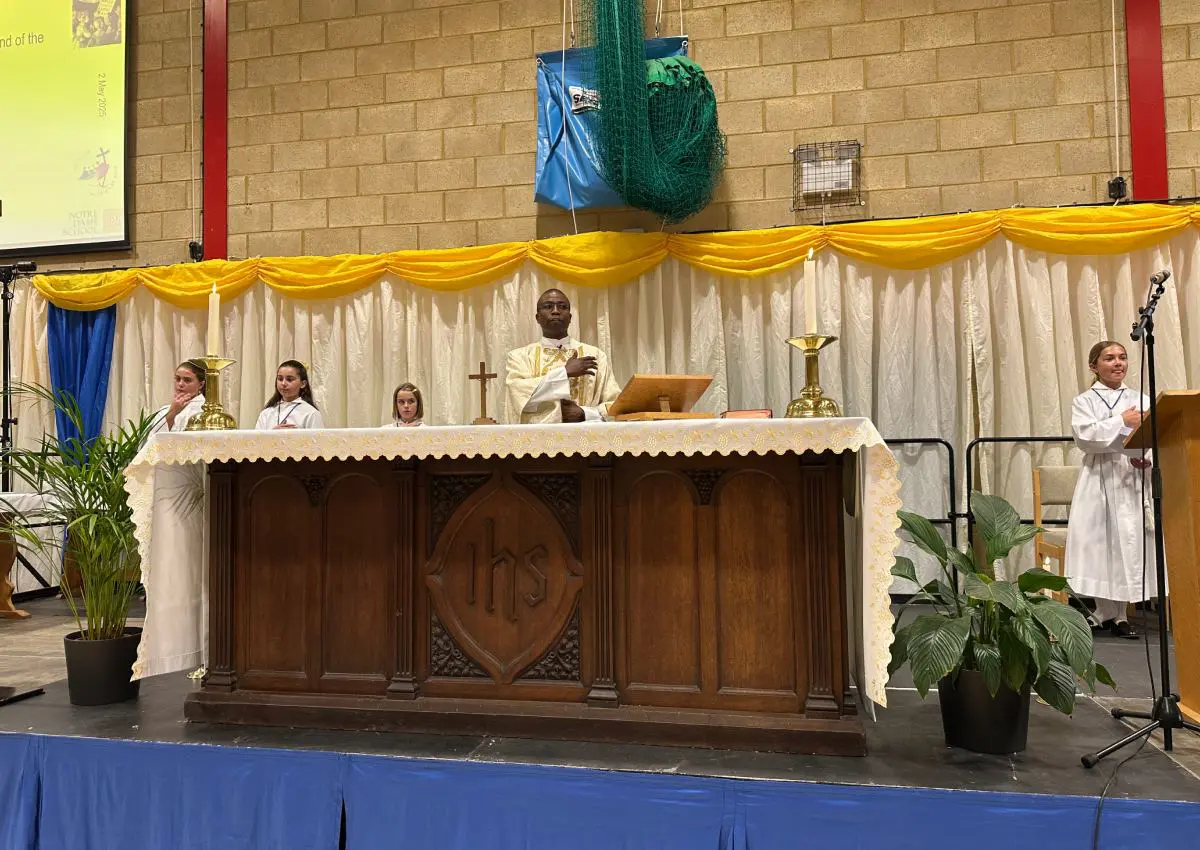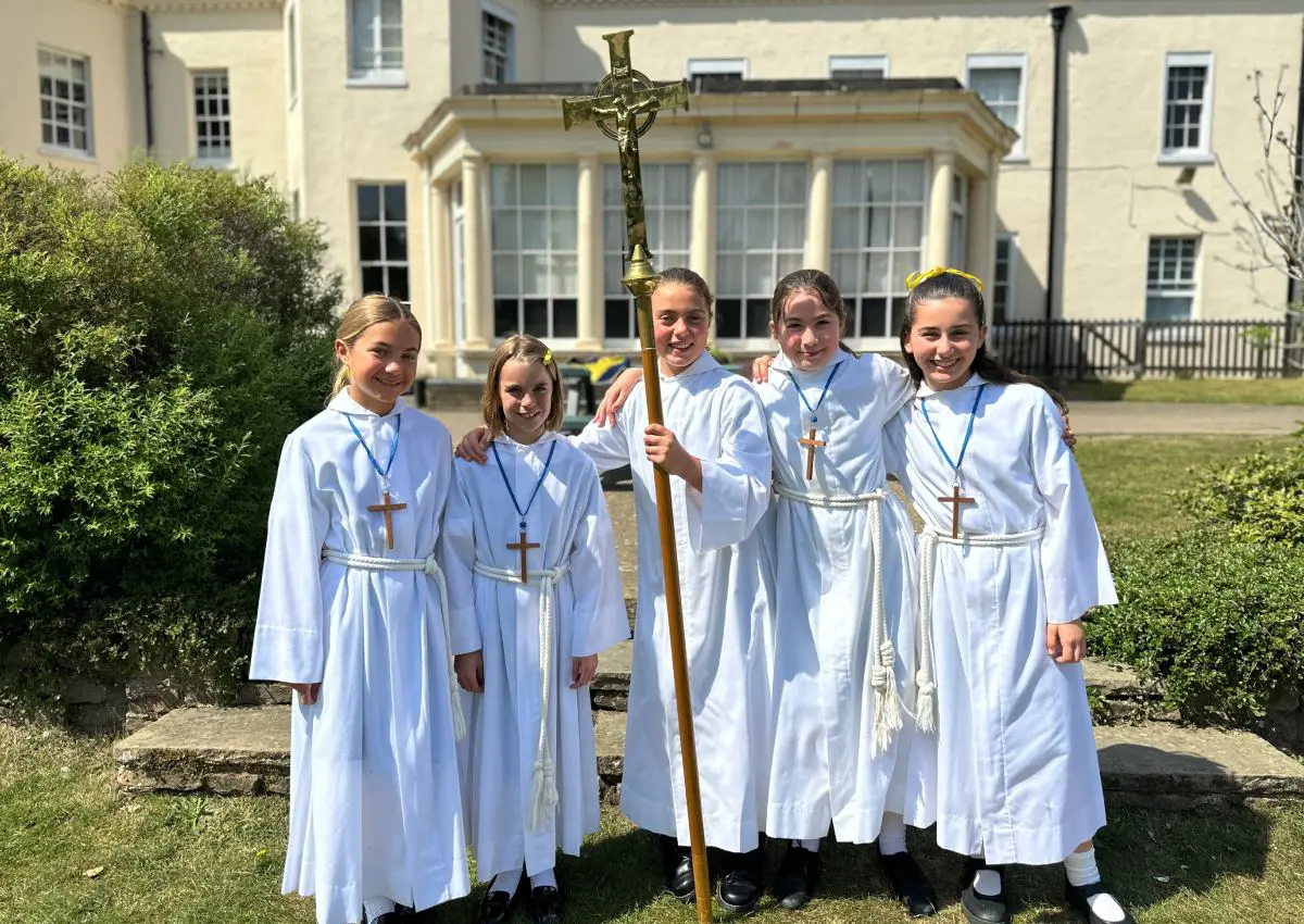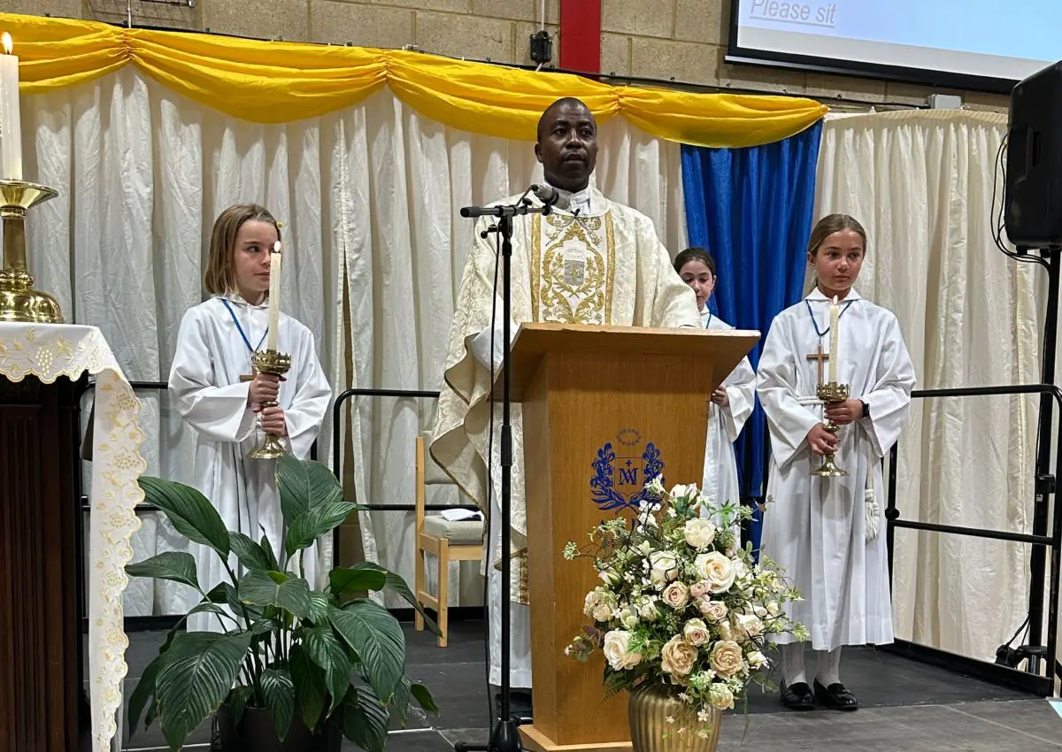 Fr Stephen celebrated Mass in the Sports Hall for all of our pupils and students from Reception to Year 13. It was lovely that for our celebration of Mass we were joined by Sister Anne, Sister Faith, Sister Maria and Sister Patricia, as well as the Director of Education for the Diocese of Arundel and Brighton, and the General Secretary of the Catholic Independent Schools’ Conference.