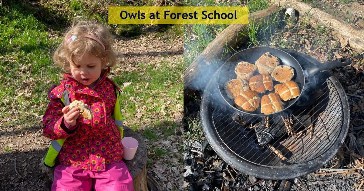 Hot Cross buns were toasted on the campfire in Forest School this week and were enjoyed with strawberry jam, a warm blackcurrant drink and campfire singing! The children have been looking after the flower beds and giving the flora water to help them keep hydrated. They enjoyed being creative with colourful leaf prints and they took part in team games!