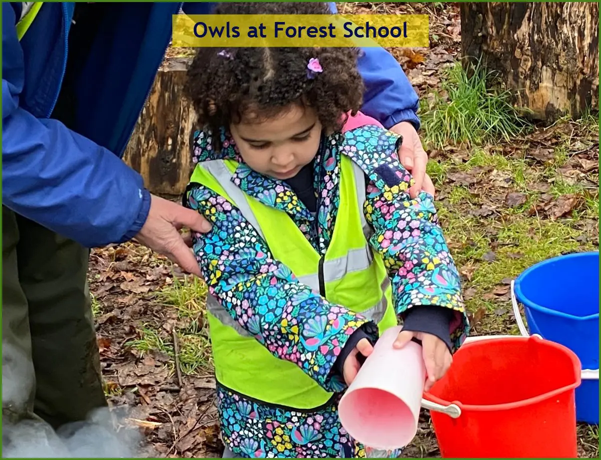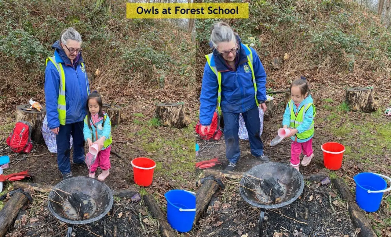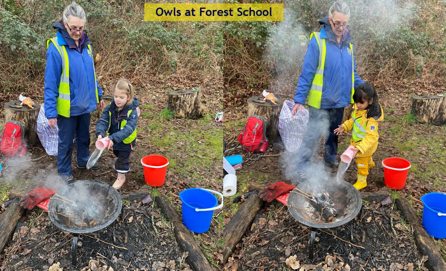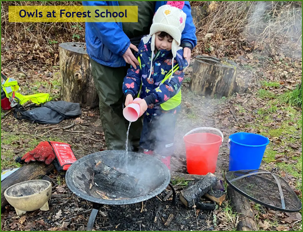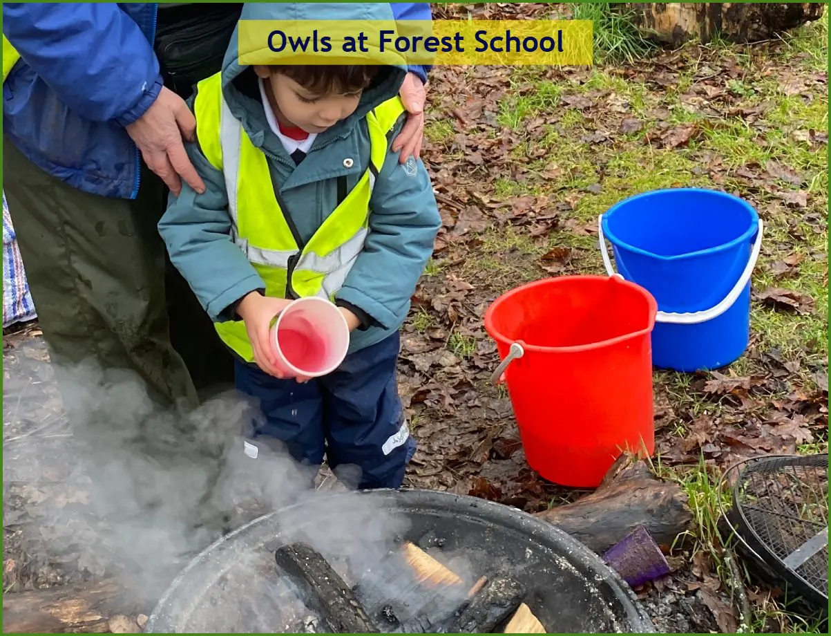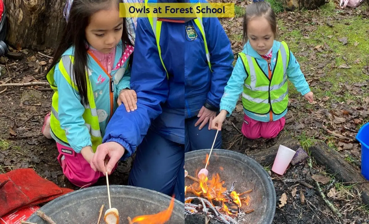 The Wise Owl groups did so well this week remembering the Forest School rules in keeping safe around fire. They cooked marshmallows with safe kneeling and enjoyed putting out the fire with water remembering to walk on the outside of the fire circle. Well done!