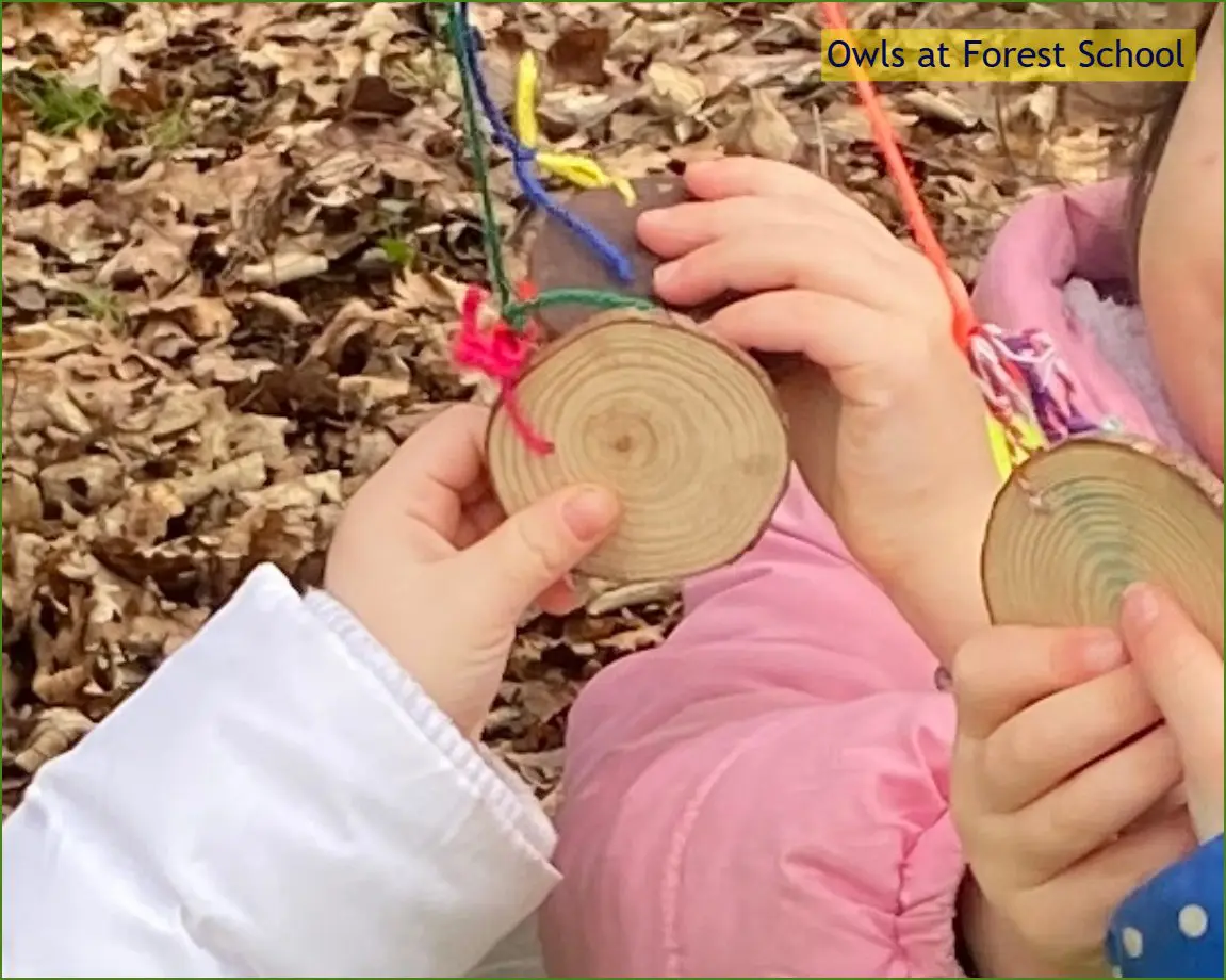 Owls class worked together with weaving friendship bracelets and they demonstrated super turn taking as they passed the discs to and fro. We observed what could be heard, seen, smelt and felt in the Forest during a minute’s Forest Bathing experience with the start and end time indicated with a bird water whistle.