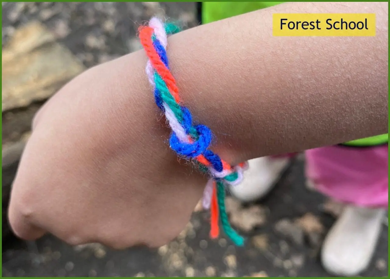 Reception girls worked together with weaving wool into friendship bracelets. They practiced knot skills with increasing precision and co-ordination in tying the ends together.