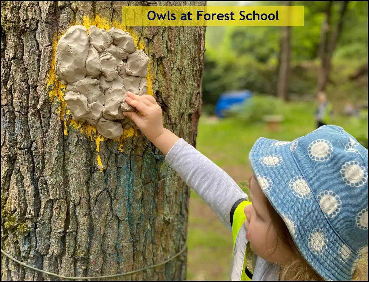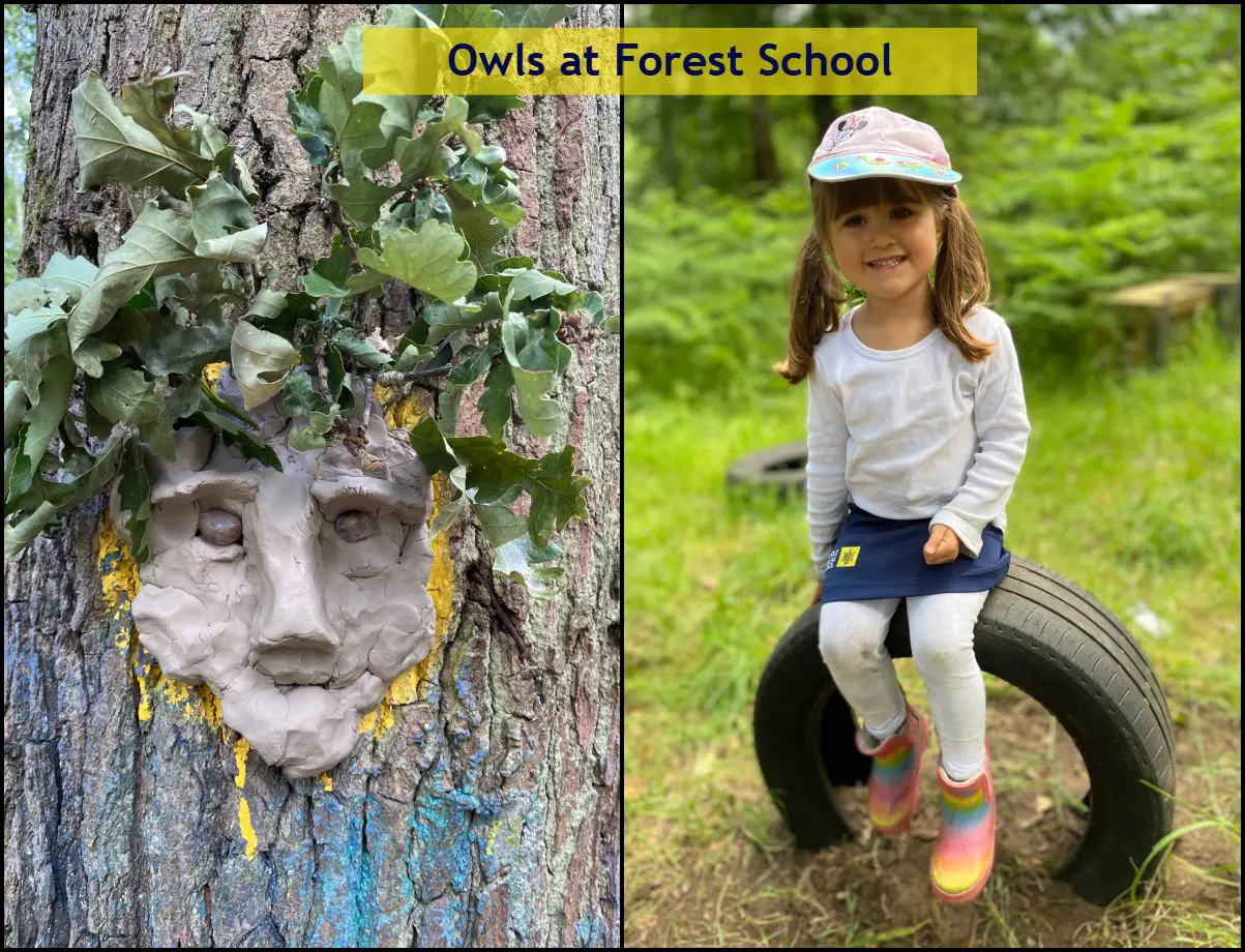 Problem solving skills developing with the Wise Owls groups in Forest School, working together to find the best way to transfer tyres to the site and then transform them into seats! Clay was transformed into a tree spirit adding natural materials found on the ground of the Forest. Well done team!