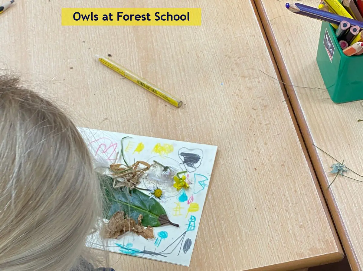Wise Owls Class exploring the Forest and finding flora that had fallen to the ground. This was helpful to have for their artwork design of birds!