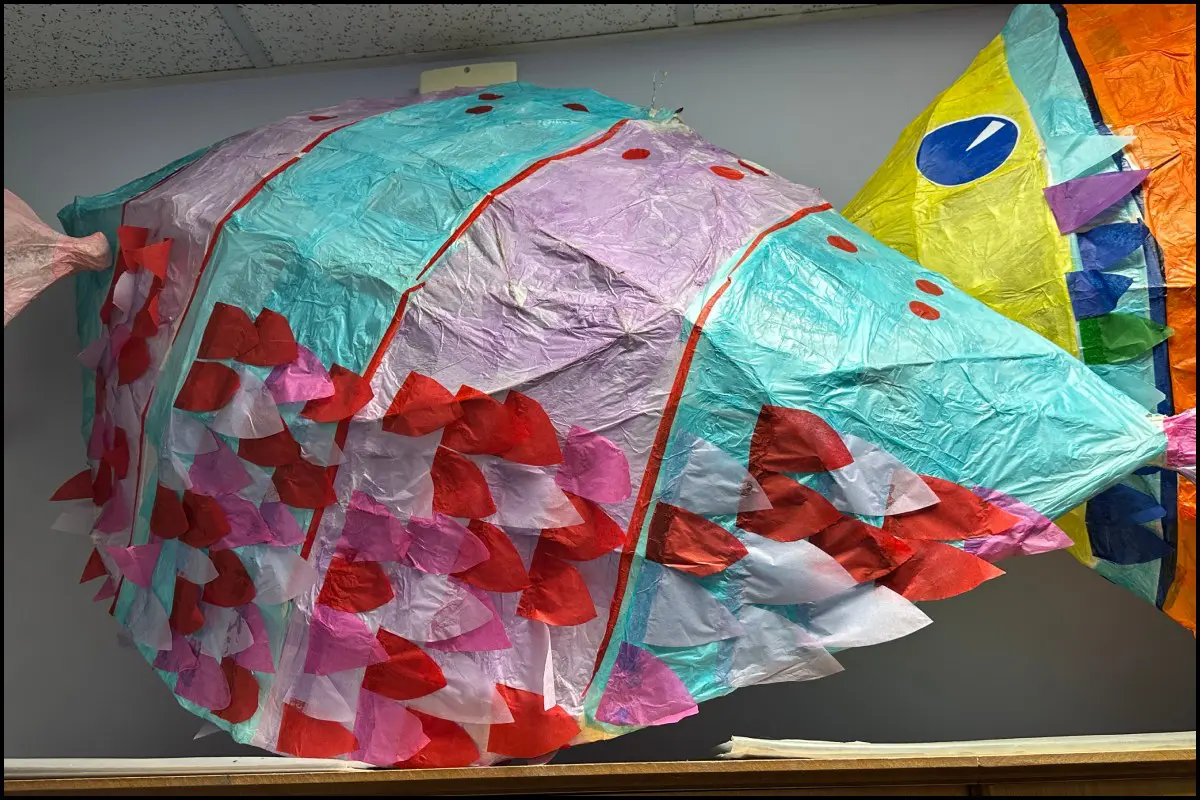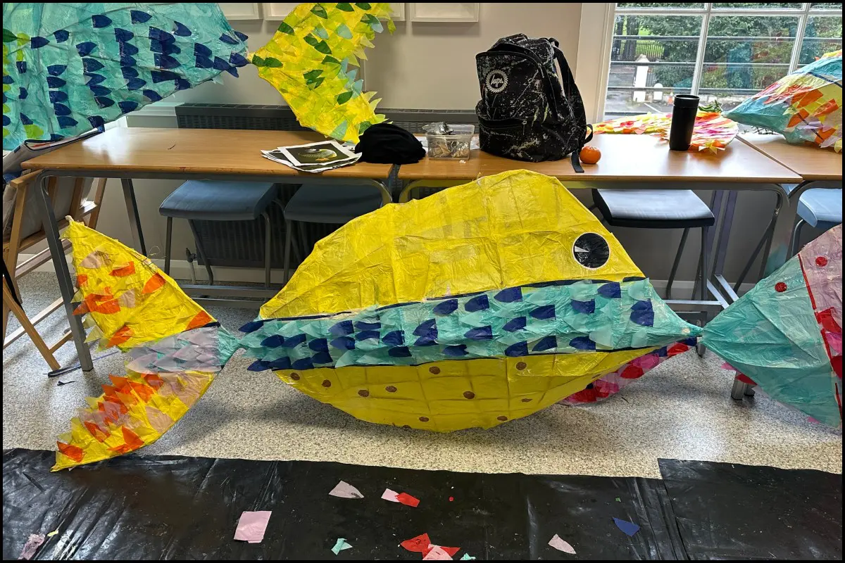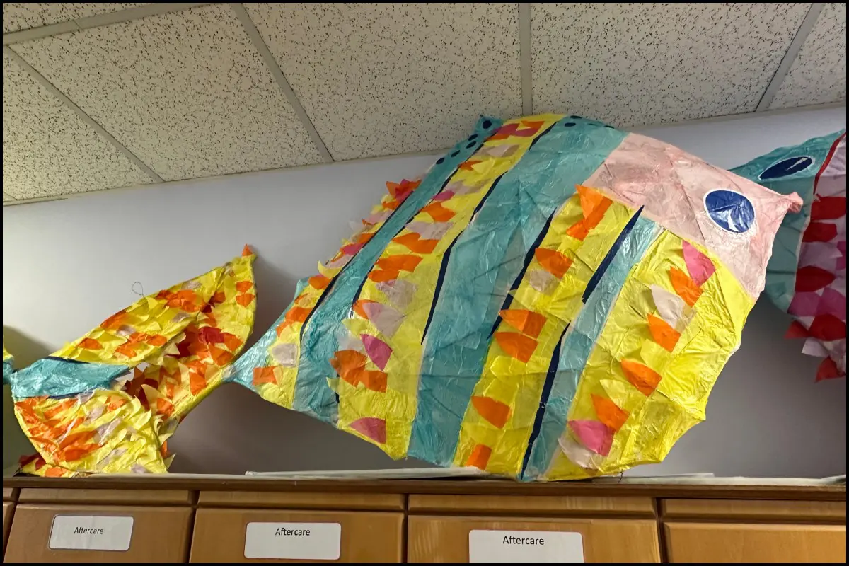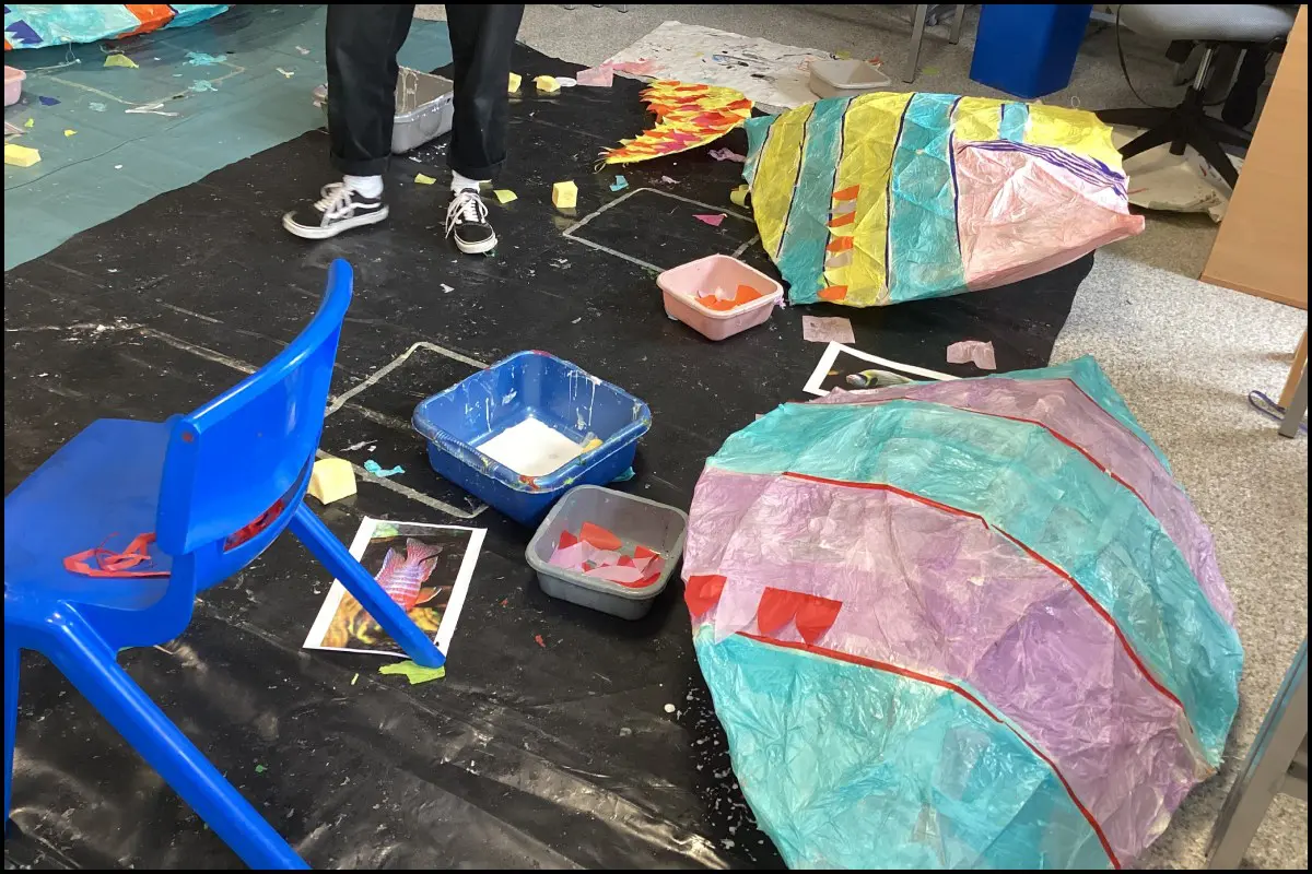 Using natural materials such as willow and tissue paper, students created striking 3D fish sculptures that explored the beauty and diversity of marine life.