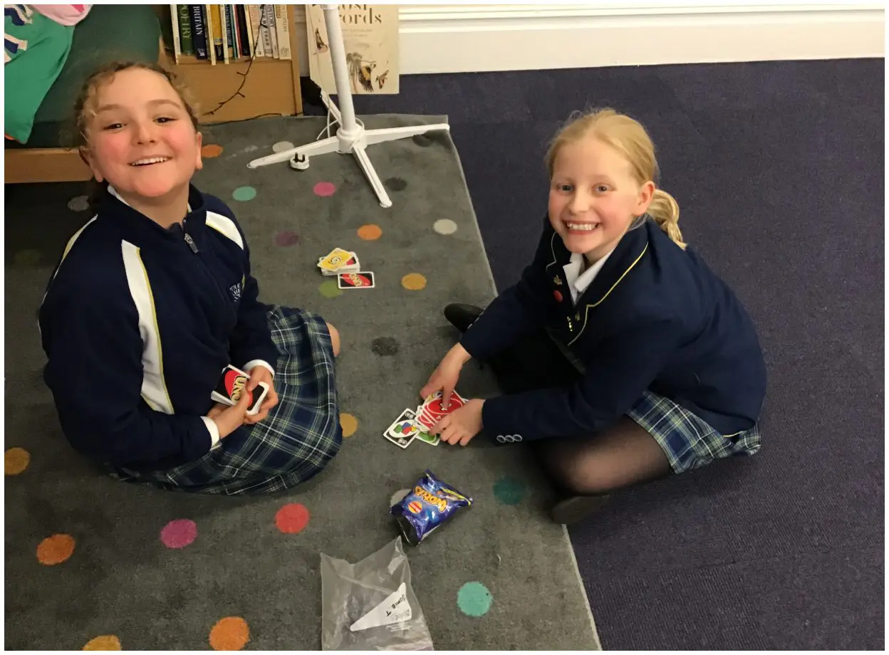 The Junior girls enjoying the variety of board games on offer in board games club.