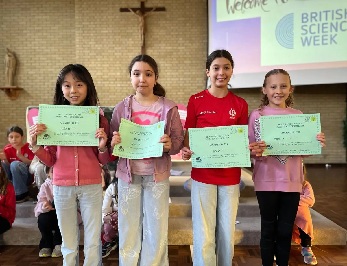 Following 6TB’s assembly this morning, the following girls were awarded Green Book, SCARF, Going For Gold, Science Reading Challenge, TTRS Going Green certificates and a swimming badge. A special mention to Mrs Purgavie who also received a running medal from a race she competed in last weekend in preparation for a half marathon in Rome later this term!