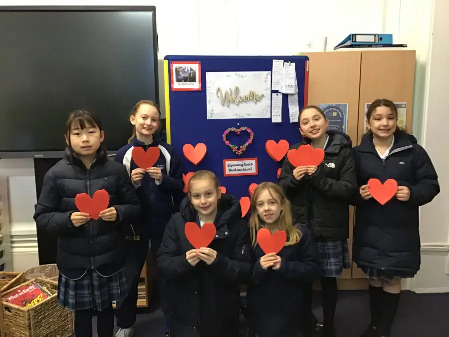 Children have been sharing the opening lines from their favourite books. Hearts can be lifted up to reveal the title of the book and the author.