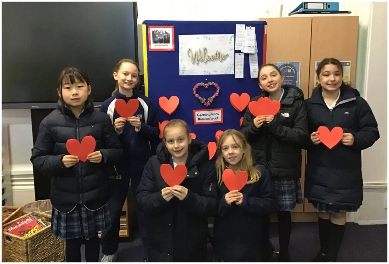 Children have been sharing the opening lines from their favourite books. Hearts can be lifted up to reveal the title of the book and the author.