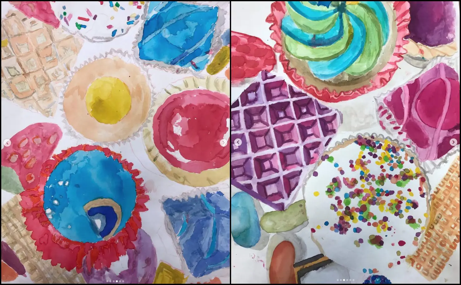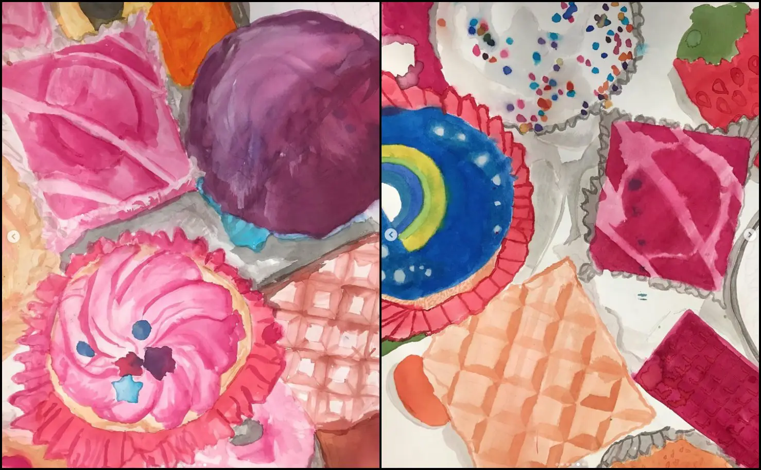 These gorgeous paintings of sweet treats were completed by talented year 9 students using ‘brusho ink’ technique.