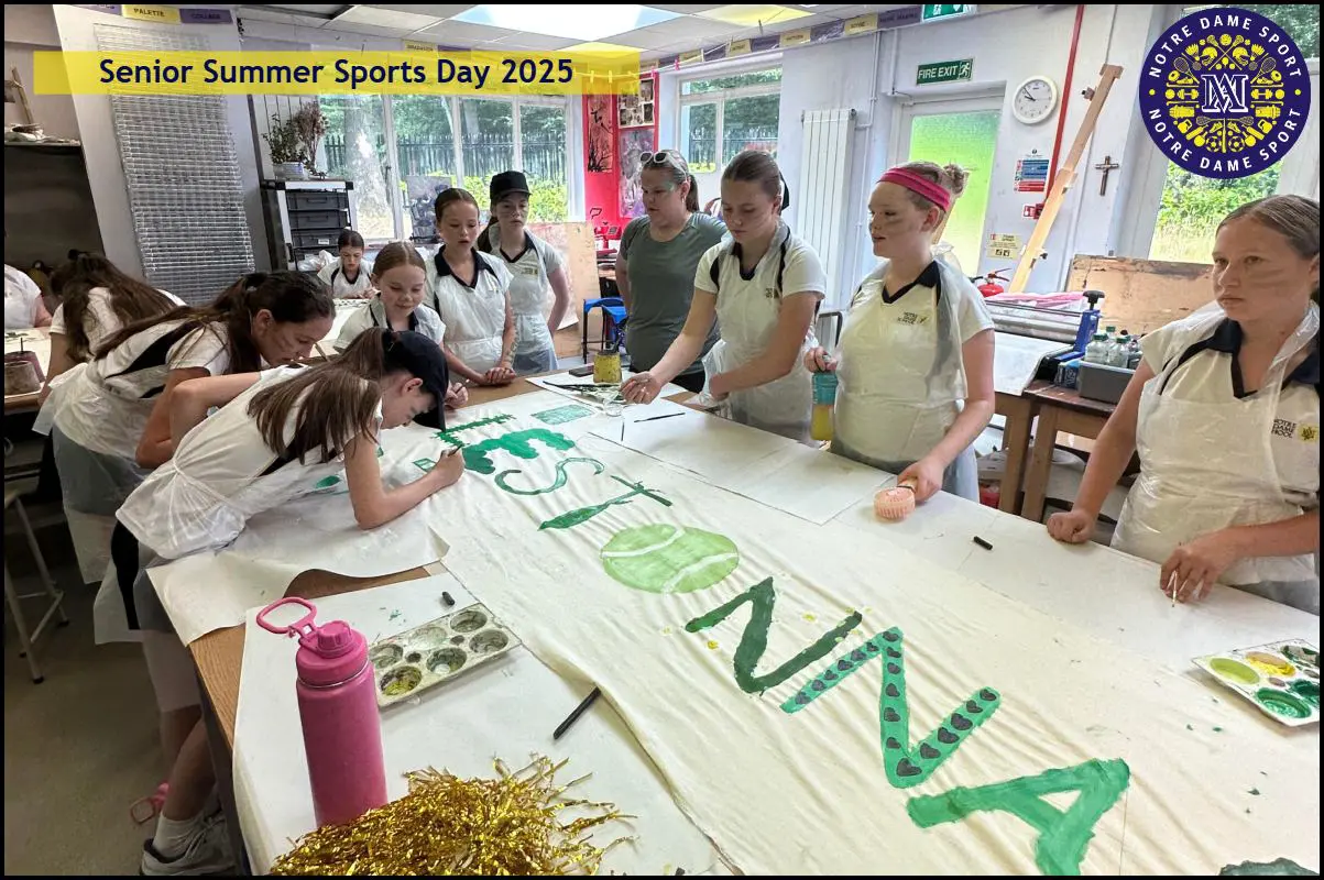 Indoors, pupils enjoyed two different sessions. The first was a House Banner Making Competition, where creativity and house spirit were on full display. In the Year 7 & 8 category, Montaigne House took the win with their eye-catching design and teamwork. In the Year 9 & 10 category, Lestonnac House came out on top with a bold and original banner that captured the spirit of the day.