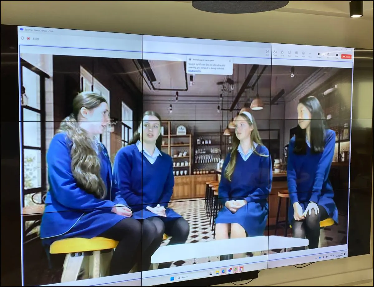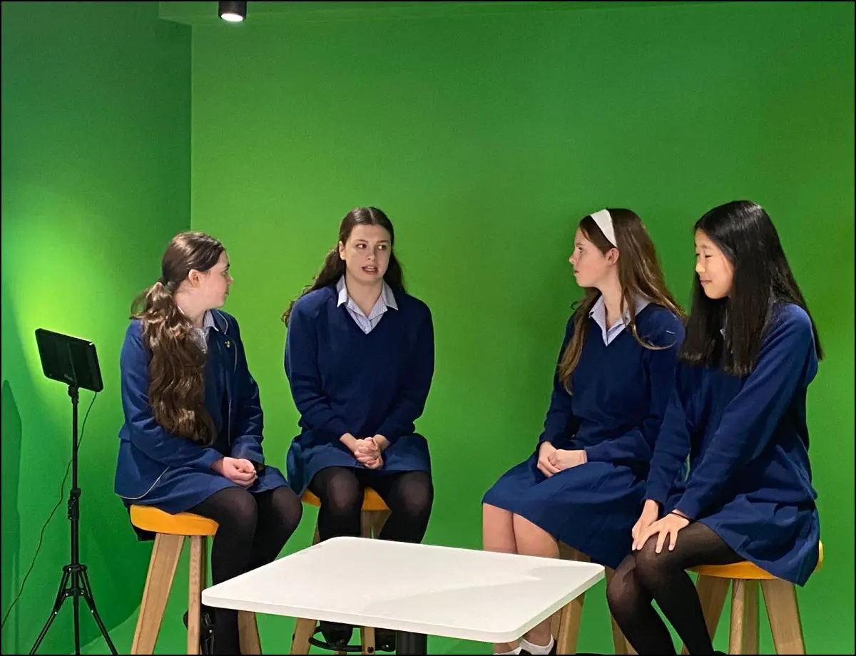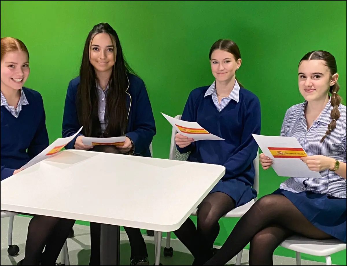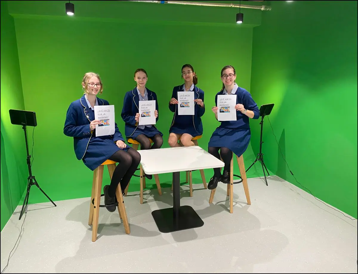 In their Spanish lessons, Year 9 designed a background and created dialogues in Spanish about daily routines in present and past which they performed in the Innovation Space in front of the Green Screen.