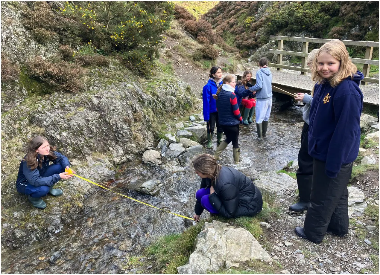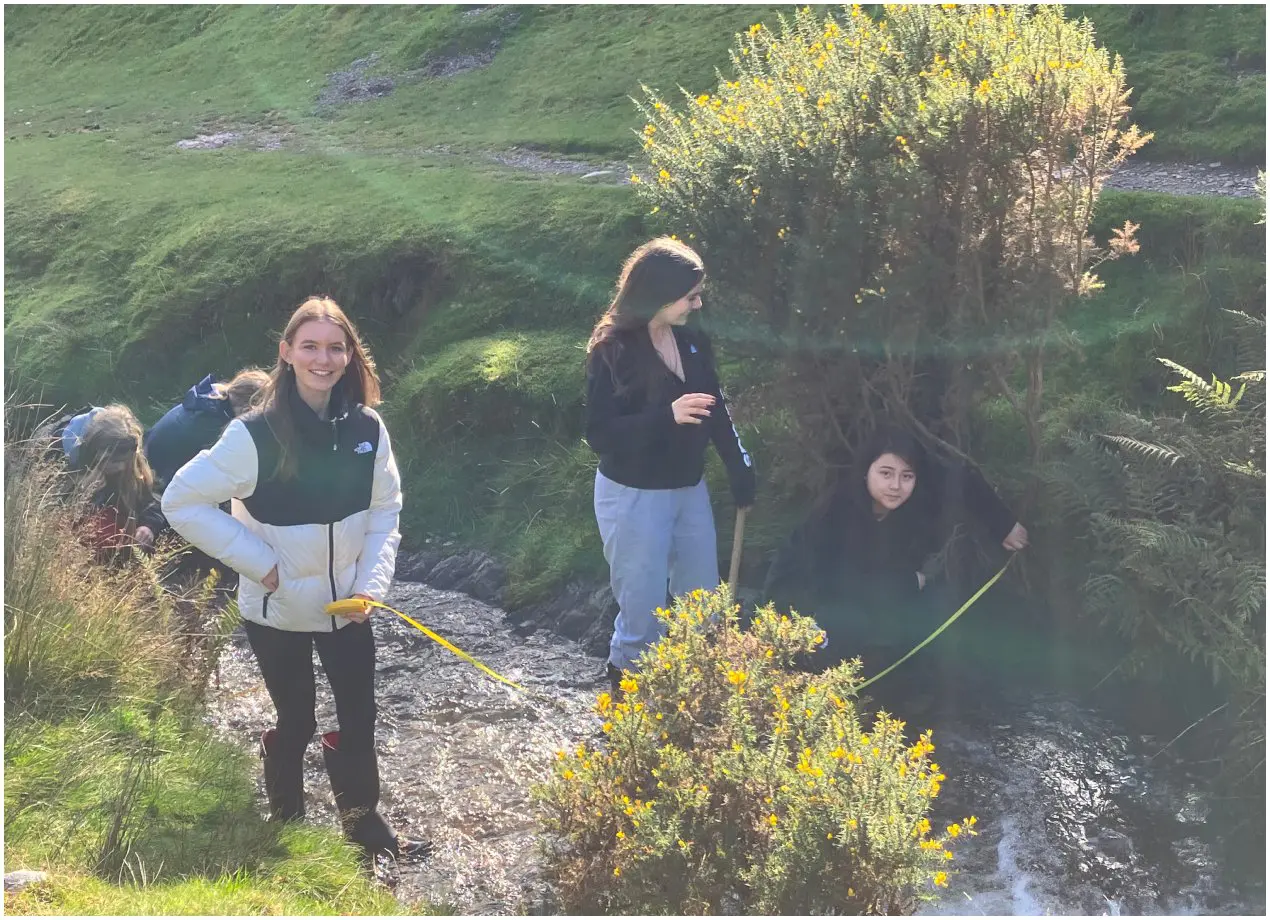 On Monday, we went to Carding Mill Valley, a heather marshland, to investigate how the Ash Brook River changes downstream. We studied six sites along the river, starting at the lower course. At each site, we measured width, depth, velocity and took site notes. These notes helped us to understand why the river changed as it did and how factors like vegetation, impermeable surfaces, slope gradients and tributaries affected the river’s course.