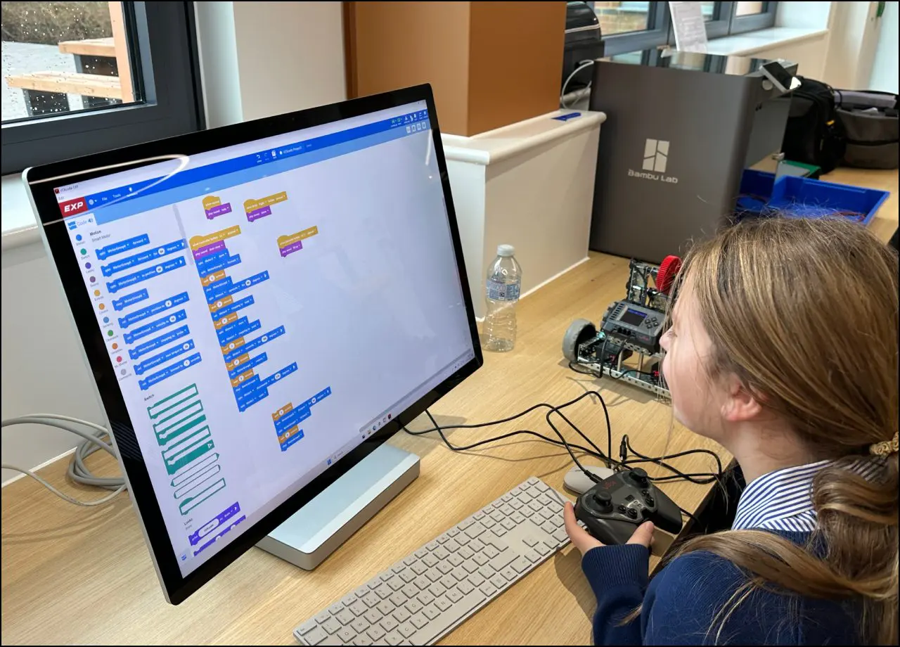 Monday morning kicked off with a Year 10 Computer Science Robotics session. They had spent the previous few sessions building their robots and this week it was time to start programming them to move. The lesson was observed by members of FoND who were suitably impressed.
