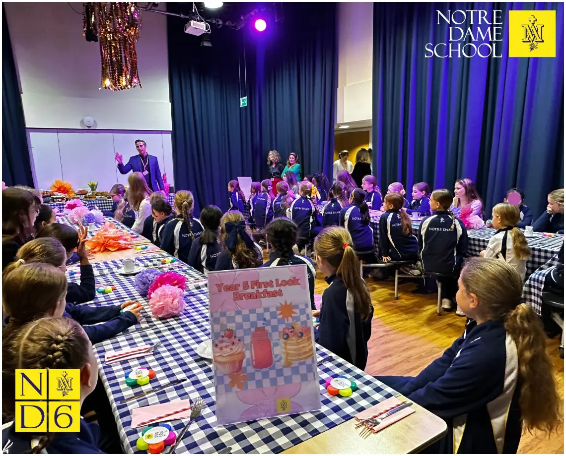 This morning our Year 5 girls enjoyed their First Look Breakfast, an introduction to life in Year 7 at Notre Dame School. Hosted by Mr Luke Routley, Head of Year 7, the event featured a fun themed breakfast designed to give the girls an engaging and informative glimpse of what awaits them in Senior School.