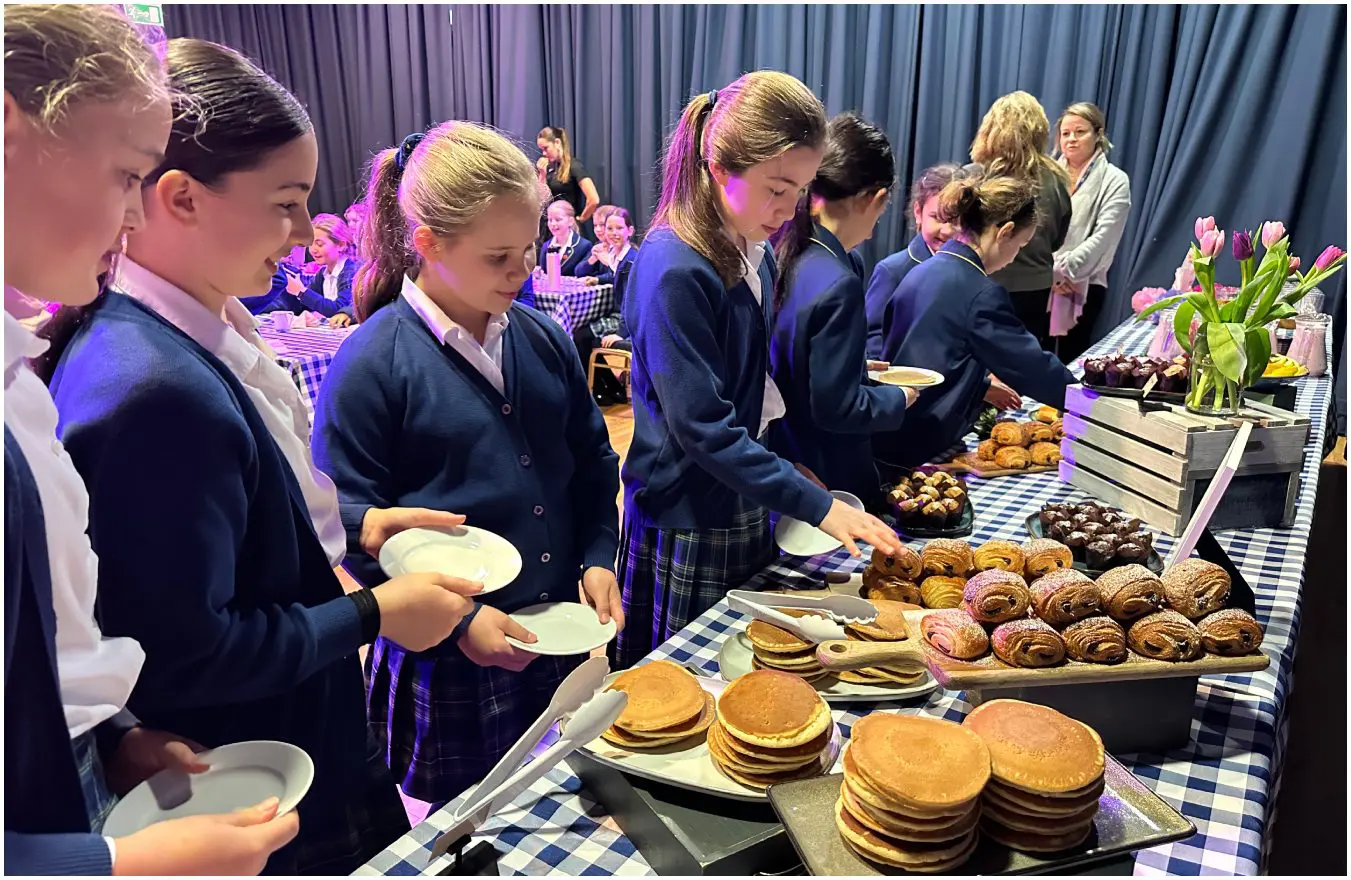 This morning Year 5 were treated to their First Look Breakfast designed to introduce current Year 5 girls to life in Year 7 at Notre Dame School. The event was hosted by Mr. Luke Routley, Head of Year 7, and featured a fun, themed breakfast. The aim was to provide an engaging and informative experience, helping the girls feel excited and prepared for their next step.