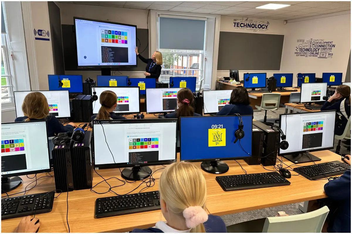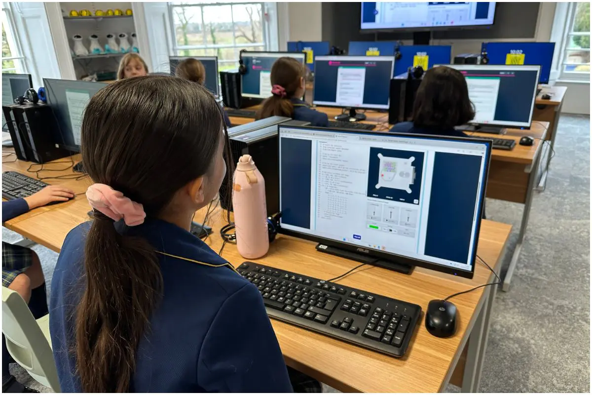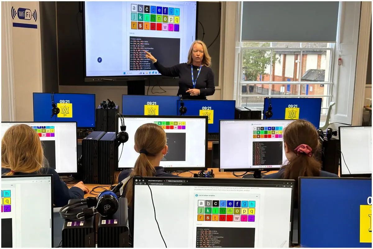 The girls were set a challenge to create code which would use the colour luminosity sensor in the new Mark II Astro Pi computer’s Sense HAT to run their program.