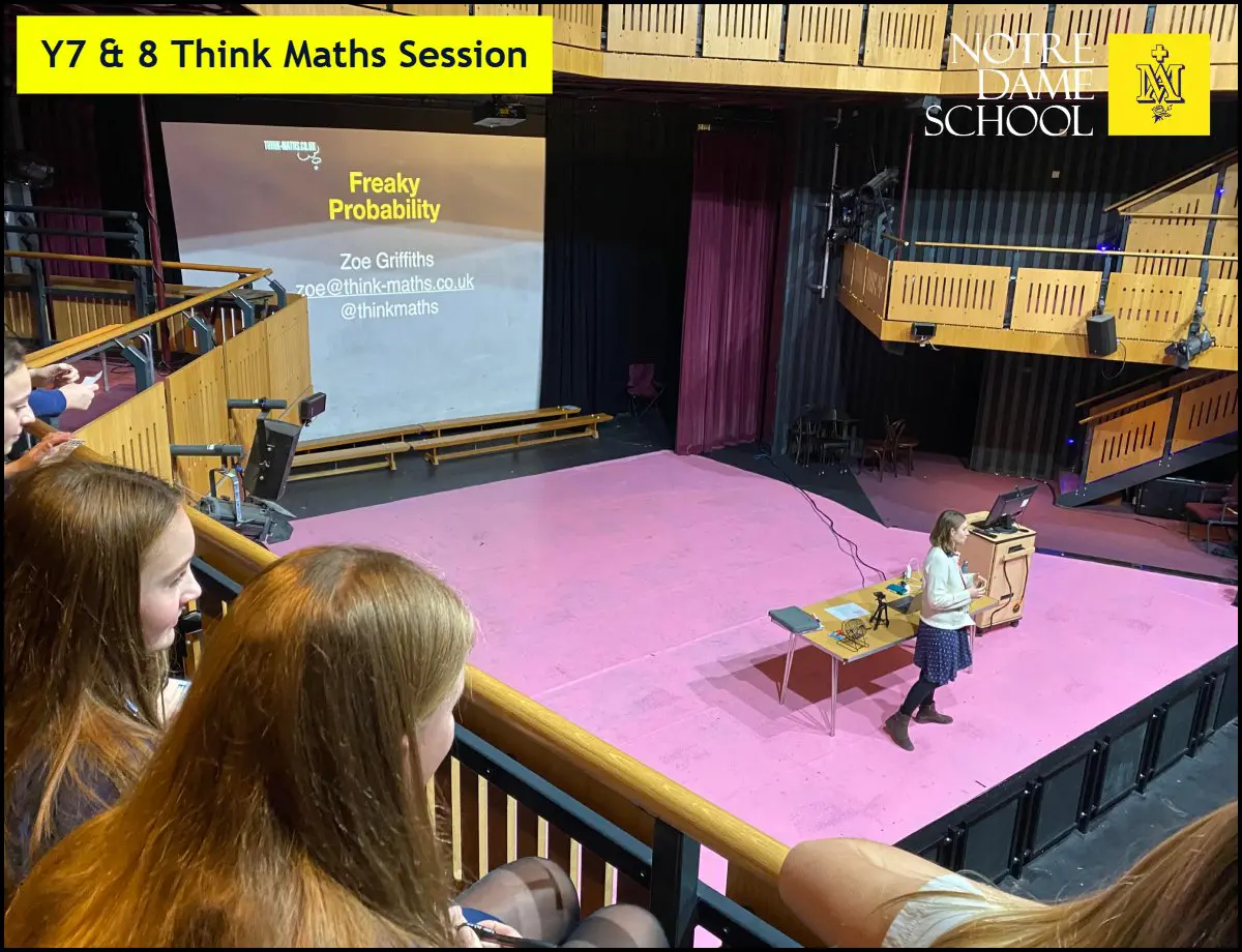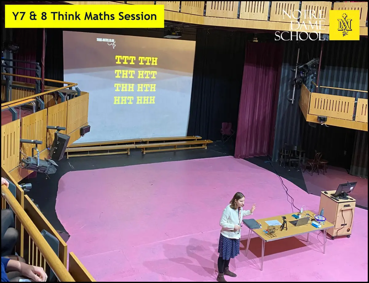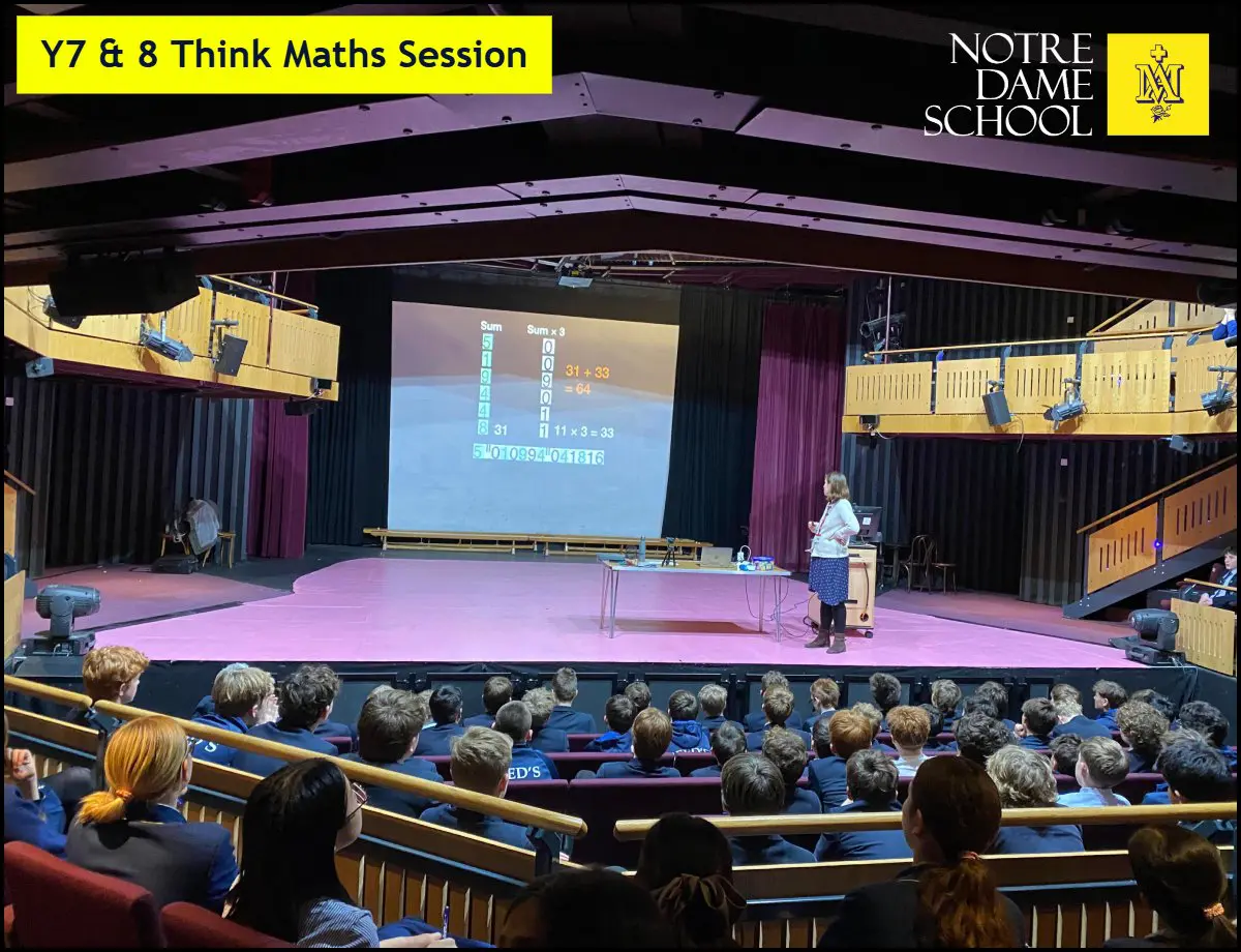 This week, Years 7 and 8 took part in two engaging Think Maths sessions in the theatre, joined by students from Reed’s School for an exciting day of discovery.