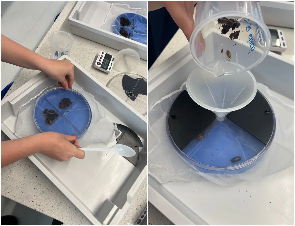 They set up their choice chambers with 4 different conditions, dark and light, then dark and light with debris. The year 7s particularly enjoyed catching their own woodlice and placing them carefully into the choice chamber.
