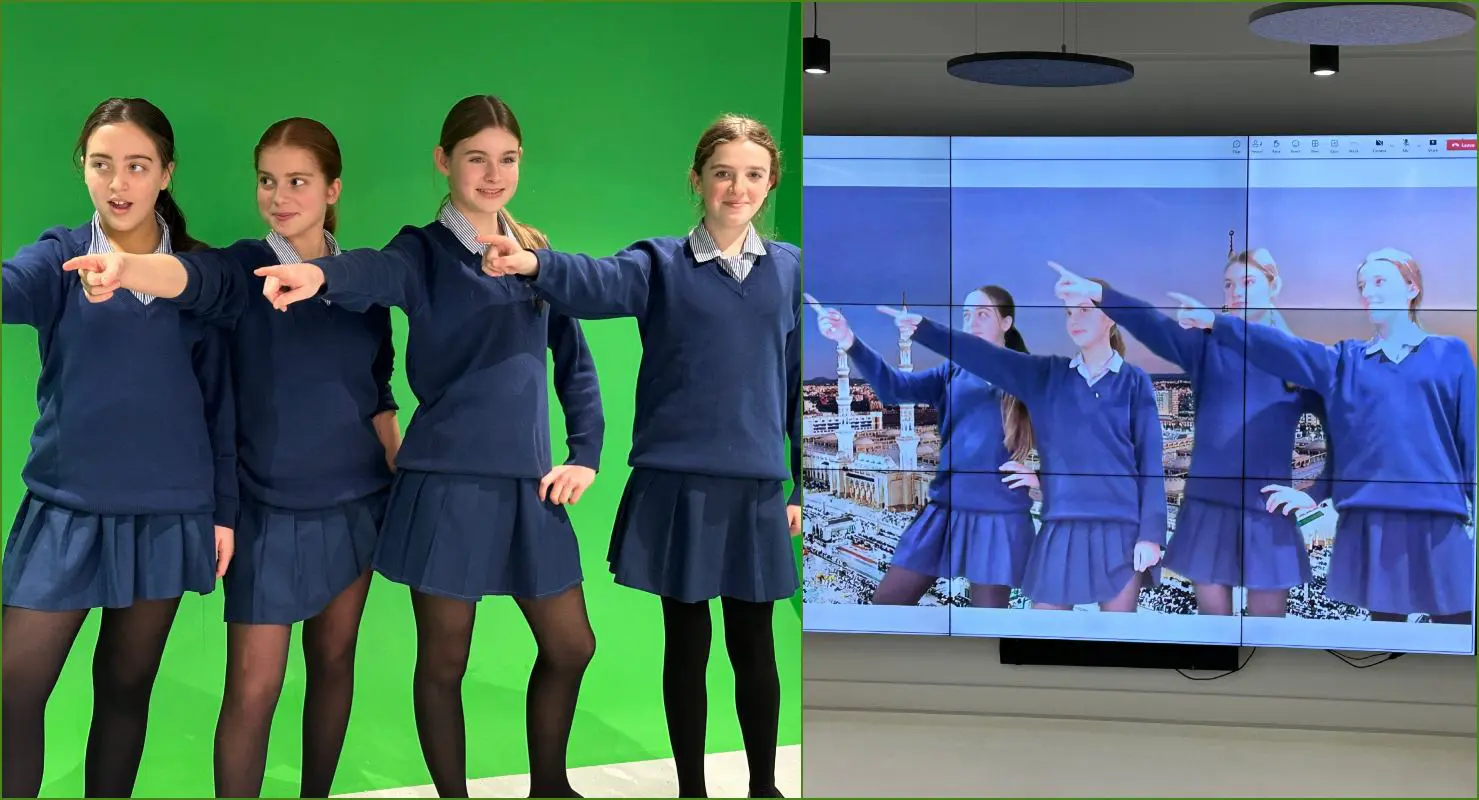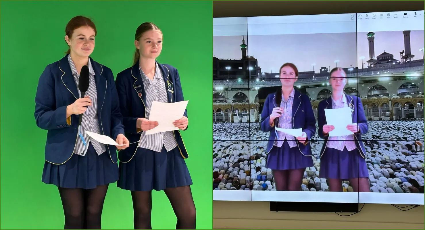 Using the green screen, students worked in groups to explore each stage of the journey, from Ihram to Tawaf and beyond.
