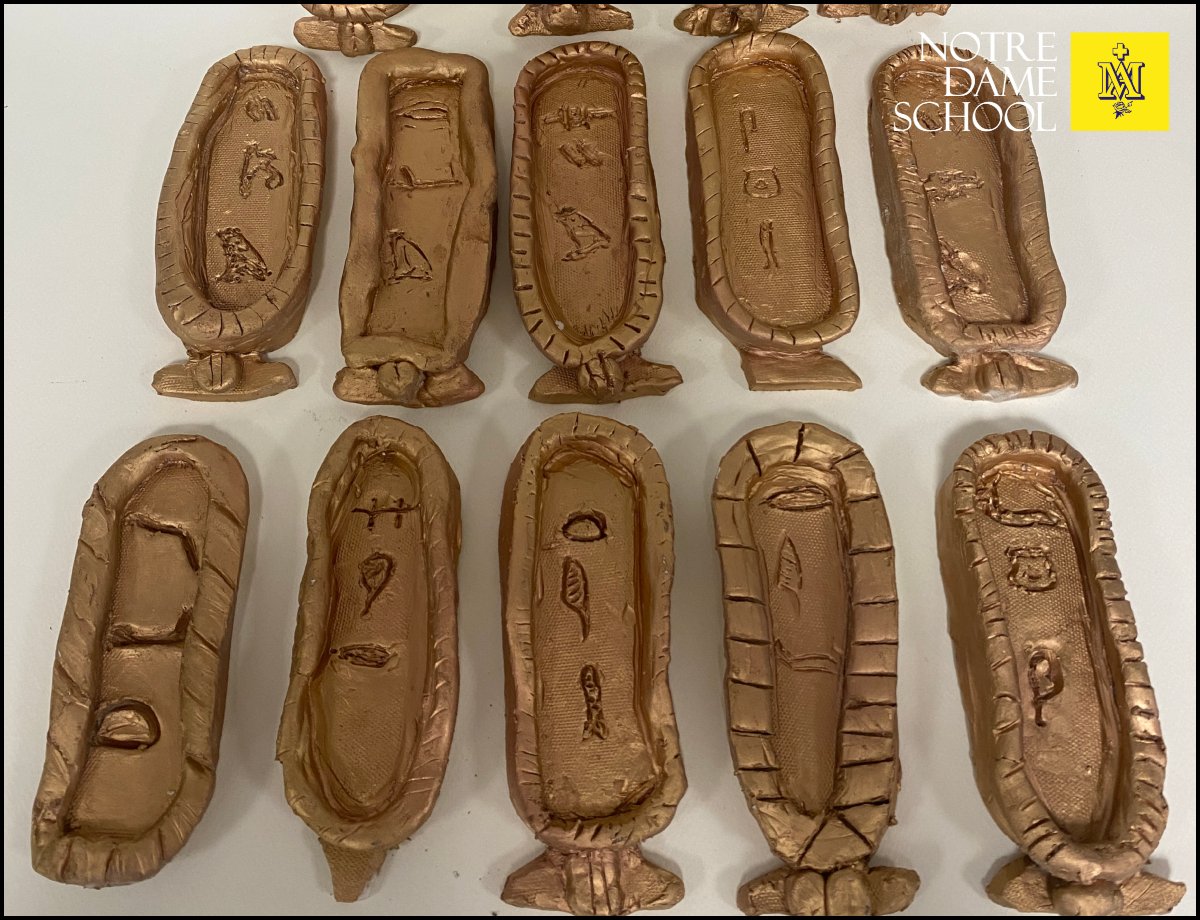 Year 4 have ended the year with these lovely Ancient Egyptian Clay Cartouches and their Ancient Egyptian landscape artworks.