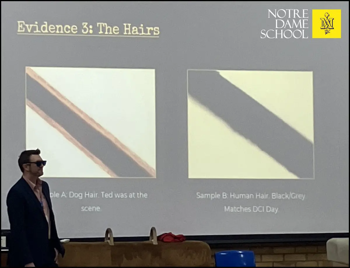 However, alibis only get you so far. To uncover the real truth, our young detectives headed to the wet and dry science labs to analyse physical evidence left at the scene. They performed chemical flame tests to track the origin of mud samples, used testing solutions to prove a “smashed window” was actually staged using fake sugar glass, and utilised light microscopes to match hair follicles and fingerprints.