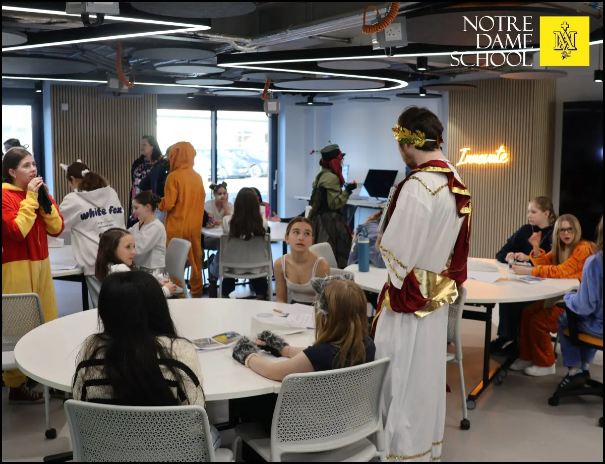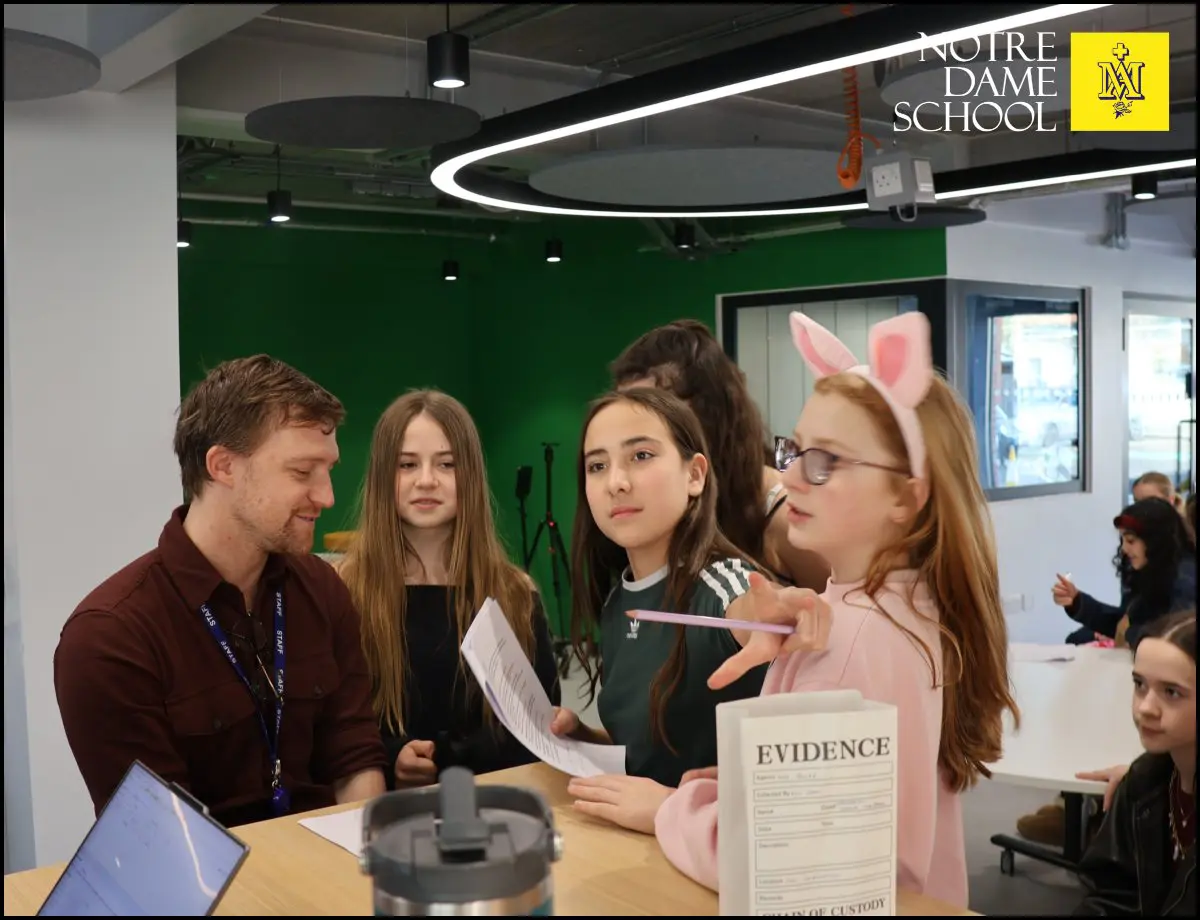Working in specialised Investigation Squads, students began by cross-examining a lineup of very suspicious staff members in the Innovation Space, including our IT department, PE staff, and even Ted the school wellbeing dog.