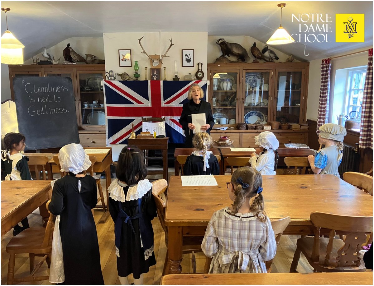 On Tuesday, Year 1 travelled to Holly Lodge in Richmond for a real-life Victorian classroom experience! We were greeted by the formidable Mrs Sawyer, who made sure our hands were spotless—after all, “Cleanliness is as important as Godliness!”