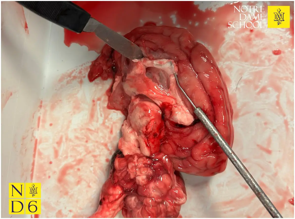 The week began with a collaborative brain dissection using veal brains, offering students a valuable opportunity to examine the brain’s structure first-hand. Working together, students identified key regions of the brain and strengthened their understanding by directly linking theoretical knowledge to real anatomical features. The session was made even more memorable by the enthusiastic involvement of a special guest — a Year 10 student who joined the activity.