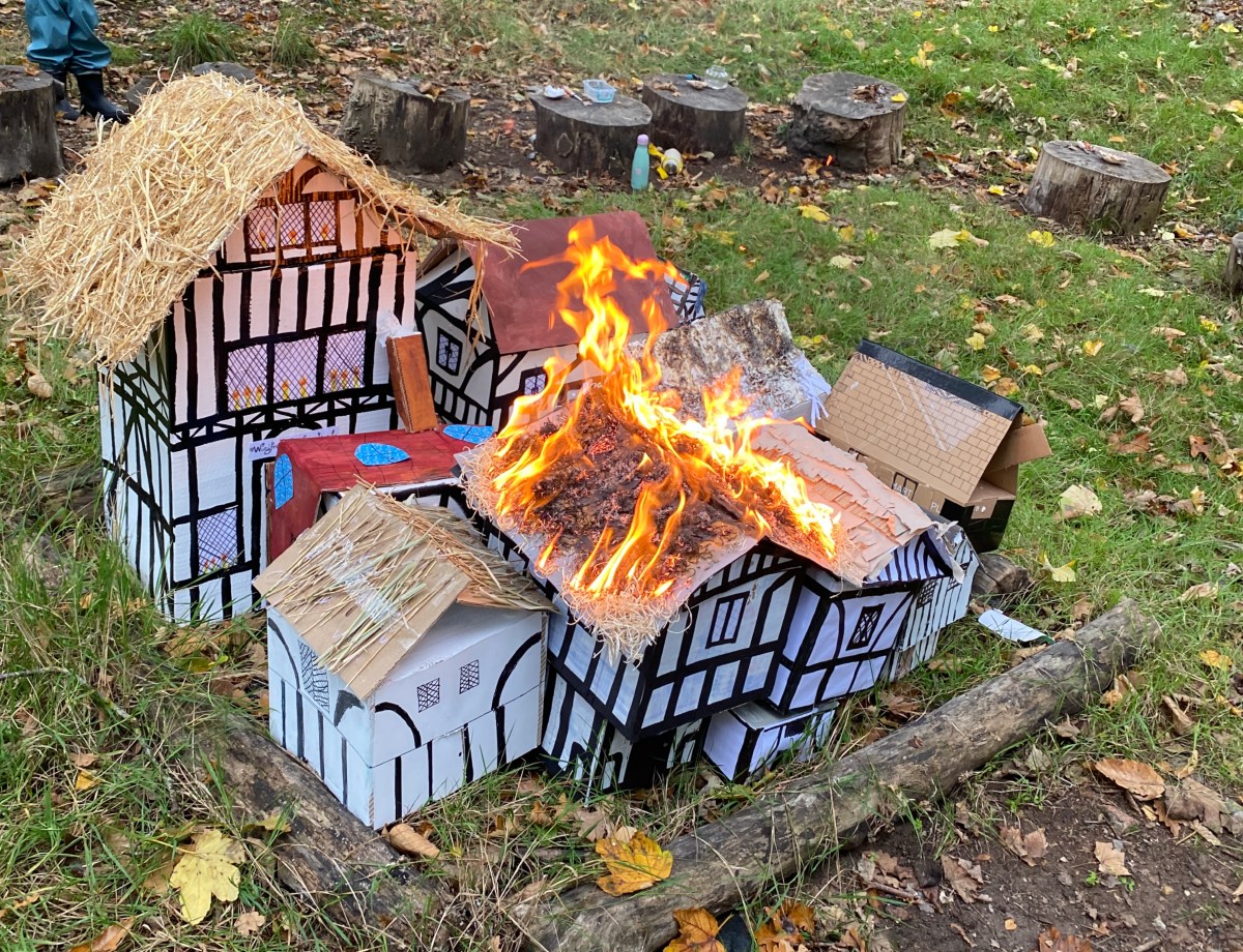 Year 2 excitedly made their way to Forest School, proudly carrying their Tudor houses, for a Fabulous Finish to their topic, The Great Fire of London. The girls were whisked back in time to 1666, stepping into a bakery on Pudding Lane, where the famous fire first began!