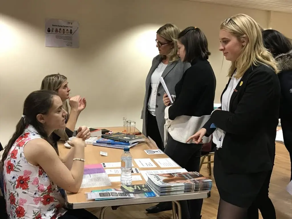 - Bi-Annual Careers Fair: this event typically features more than 30 stands covering a wide range of careers, providing students with insights into various fields, current industry trends, and the skills needed for success. These activities aim to broaden their understanding of potential career paths and help them make informed decisions. Many of our advisors and ‘stall holders’ are Notre Dame alumnae who return to pass on their knowledge.