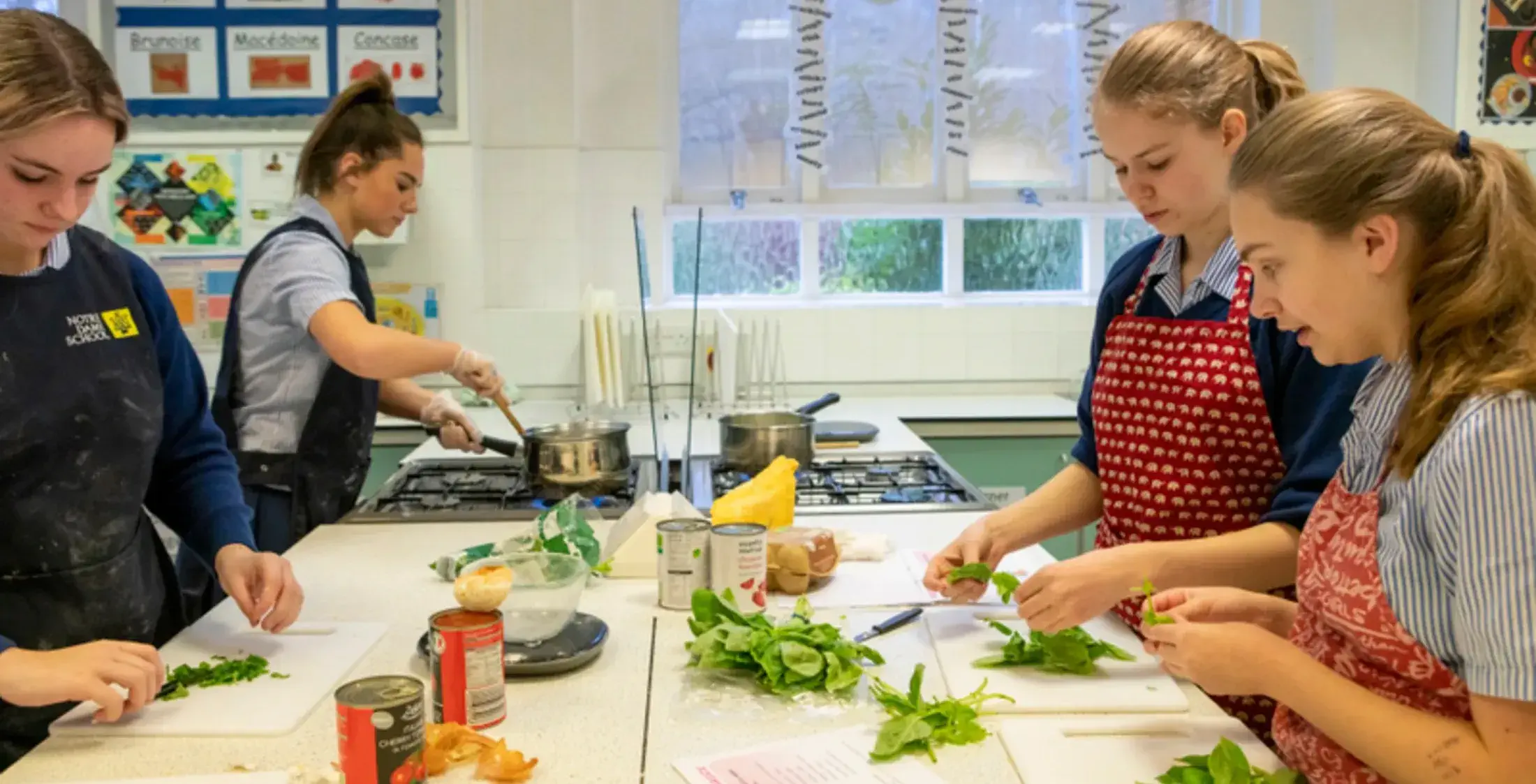 The Year 7 curriculum is directed towards the development of practical skills including the ability to work independently, to be well organised and to work safely and hygienically. The theory of the ‘Food safety and Hygiene’ is covered and practical tasks involving knife skills, using the different parts of the oven and working safely with high risk foods. The Year 8 curriculum builds on skills and nutritional knowledge and covers the Eat Well Plate which links in with Year 8 biology. Students will have practical experience of cooking a dish from each food group segment including Jam Swiss Roll, pizza swirls and Sausage Rolls. Practical skills taught include rubbing in, cake making and developing their own recipe based on a celebrity. In Year 9, recognizing the greater need for independence, students will make well-known dishes including a lemon flan, French galette and lasagna. Students’ also gain highly developed planning and baking skills through the Great British Bake Off competition.