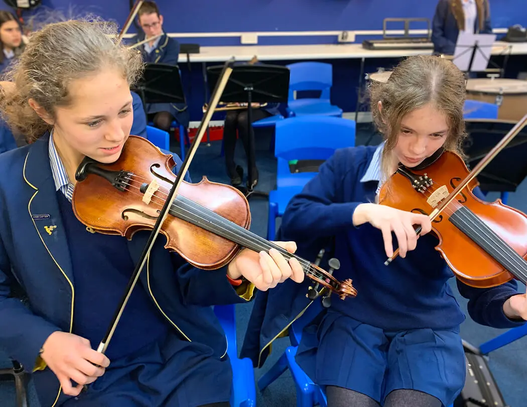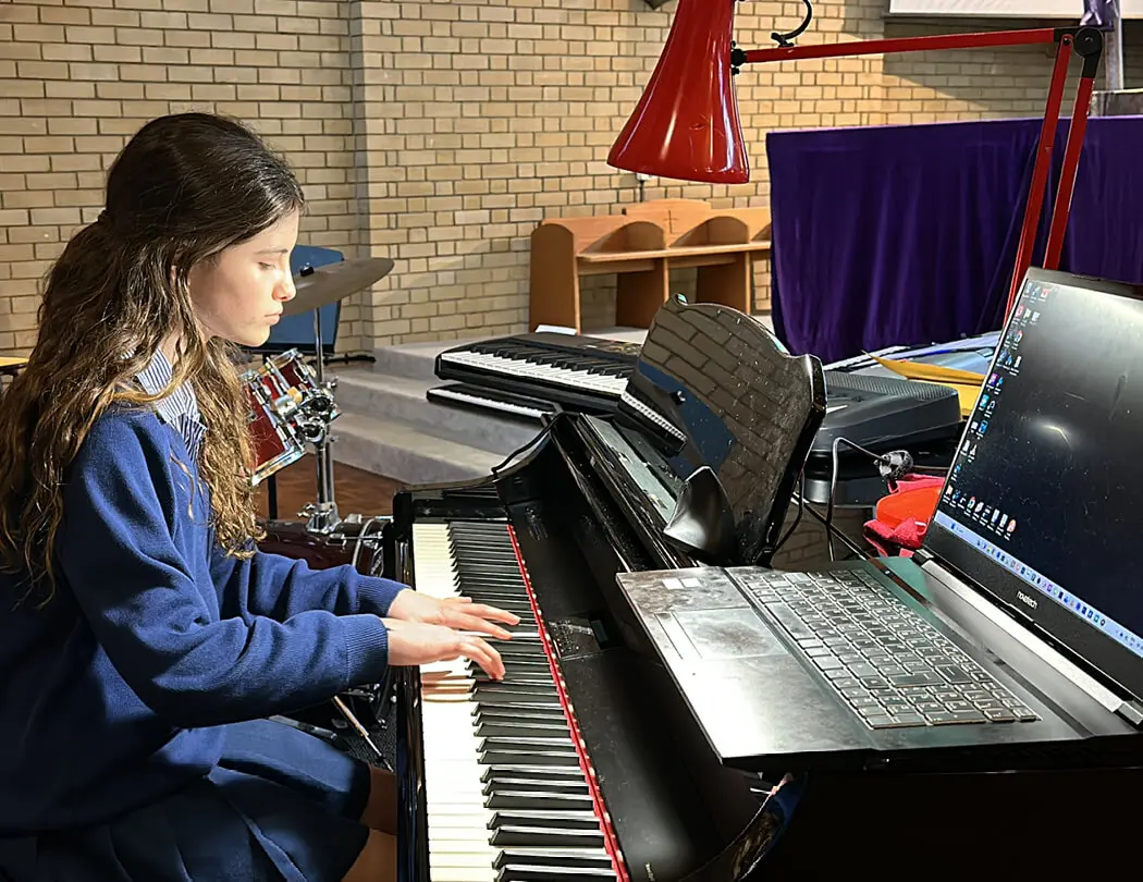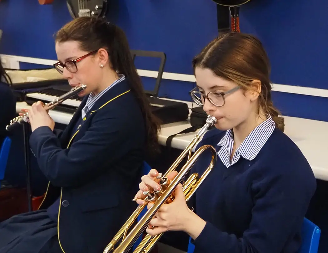 Music is for everyone at Notre Dame, whether a beginner with only a few notes to play or a proficient performer ready to start a Music Degree. It covers all genres and styles from plainchant to rap and from a Classical concerto to a Blues “Improv” session. There is a wide range of musical styles to choose from: our musicians have attended the Guildhall Junior School and have successfully auditioned for the National Schools Symphony Orchestra, while others have started their own Pop groups, or have chosen a career path associated with management in the music industry. Our choirs tour regularly and have performed in cathedrals in London, Rome, Paris, Vienna and Santiago di Compostella. A major Musical is produced each year in conjunction with the Drama Department.